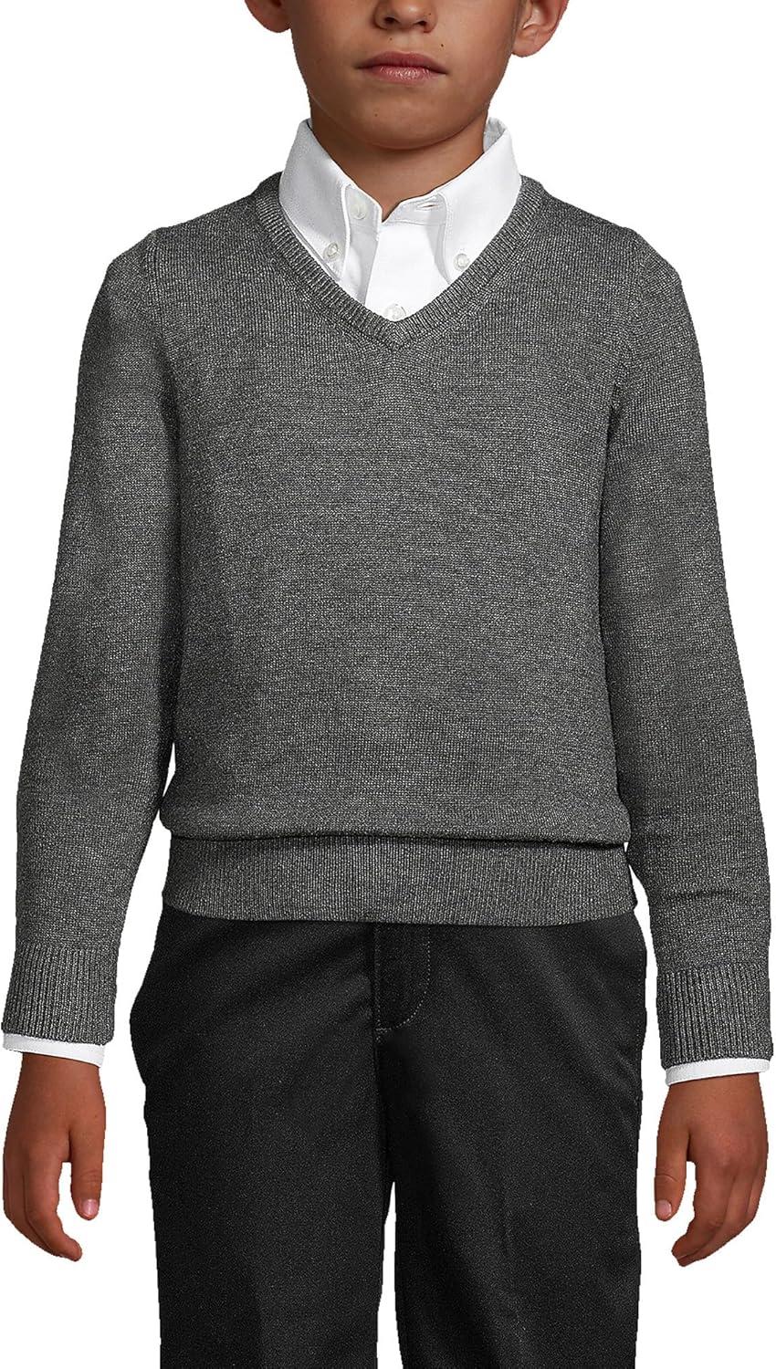 Lands’ End School Uniform Boys Cotton Modal Fine Gauge V-Neck Sweater(Pewter Heather)