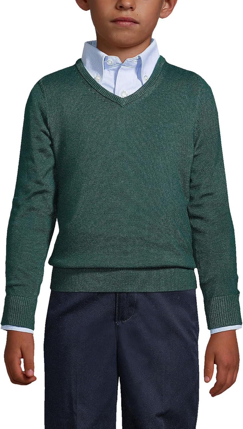 Lands’ End School Uniform Boys Cotton Modal Fine Gauge V-Neck Sweater(Evergreen)