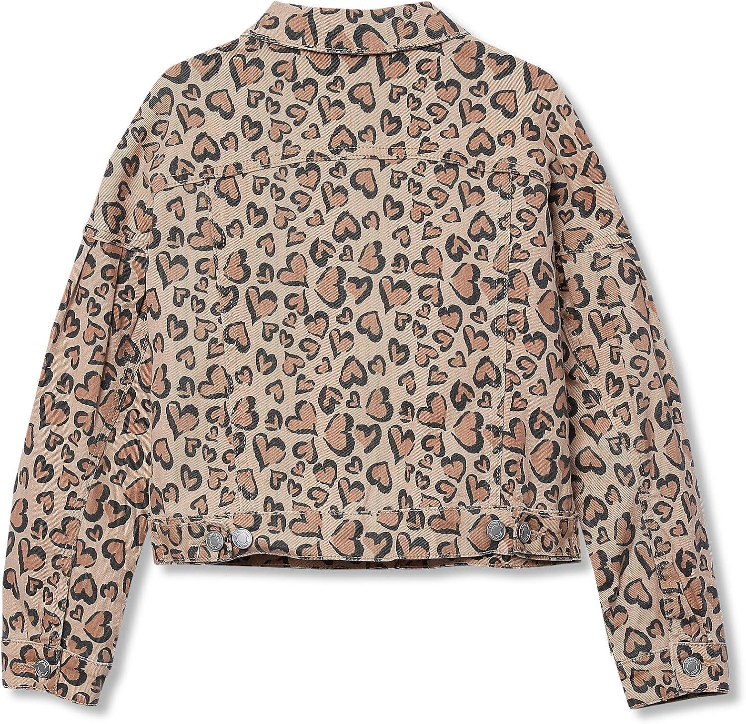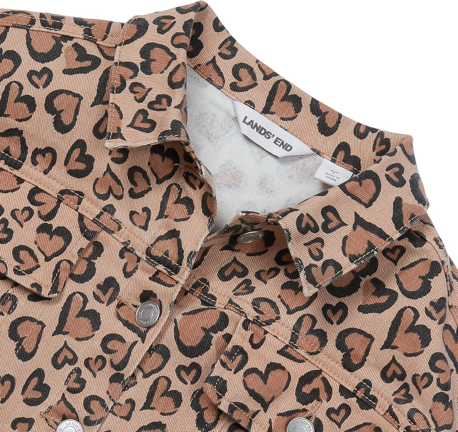 Lands’ End Girls Denim Jacket(Tan Cheetah Hearts)