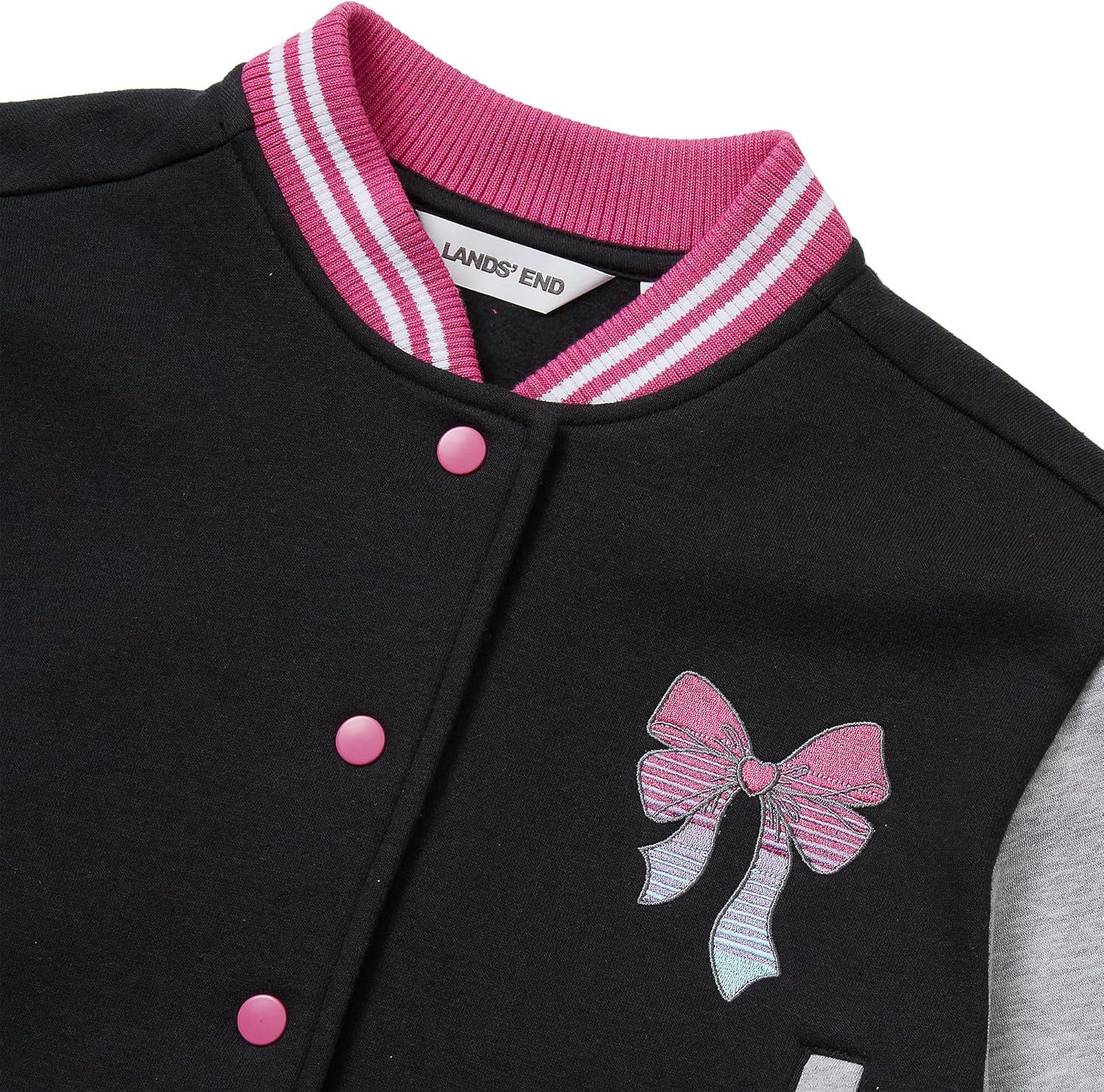 Lands’ End Girls Varsity Bomber Jacket(Bow/Black/Gray Heather)