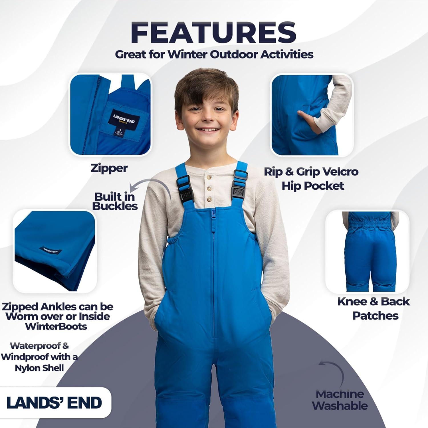 Lands’ End Boys Squall Waterproof Iron Knee Bib Snow Pants(Nautical Blue)