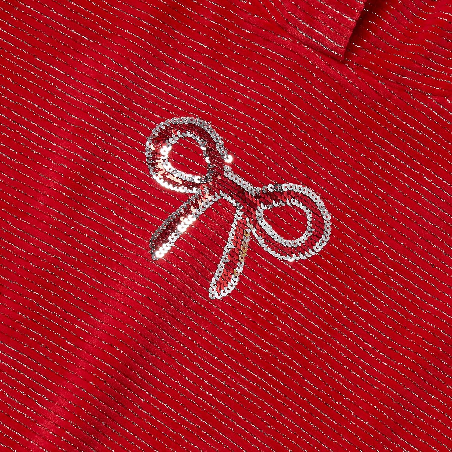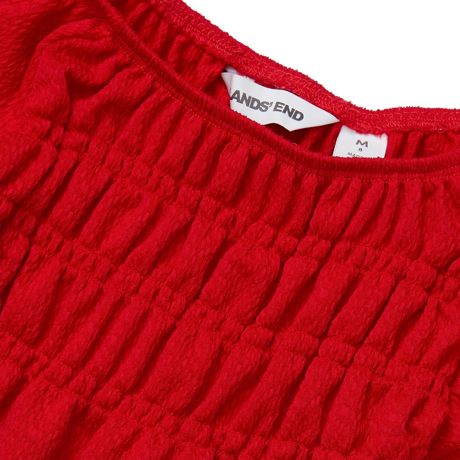 Lands’ End Girls Smocked Long Sleeve Knit Shirt(Apple Red)