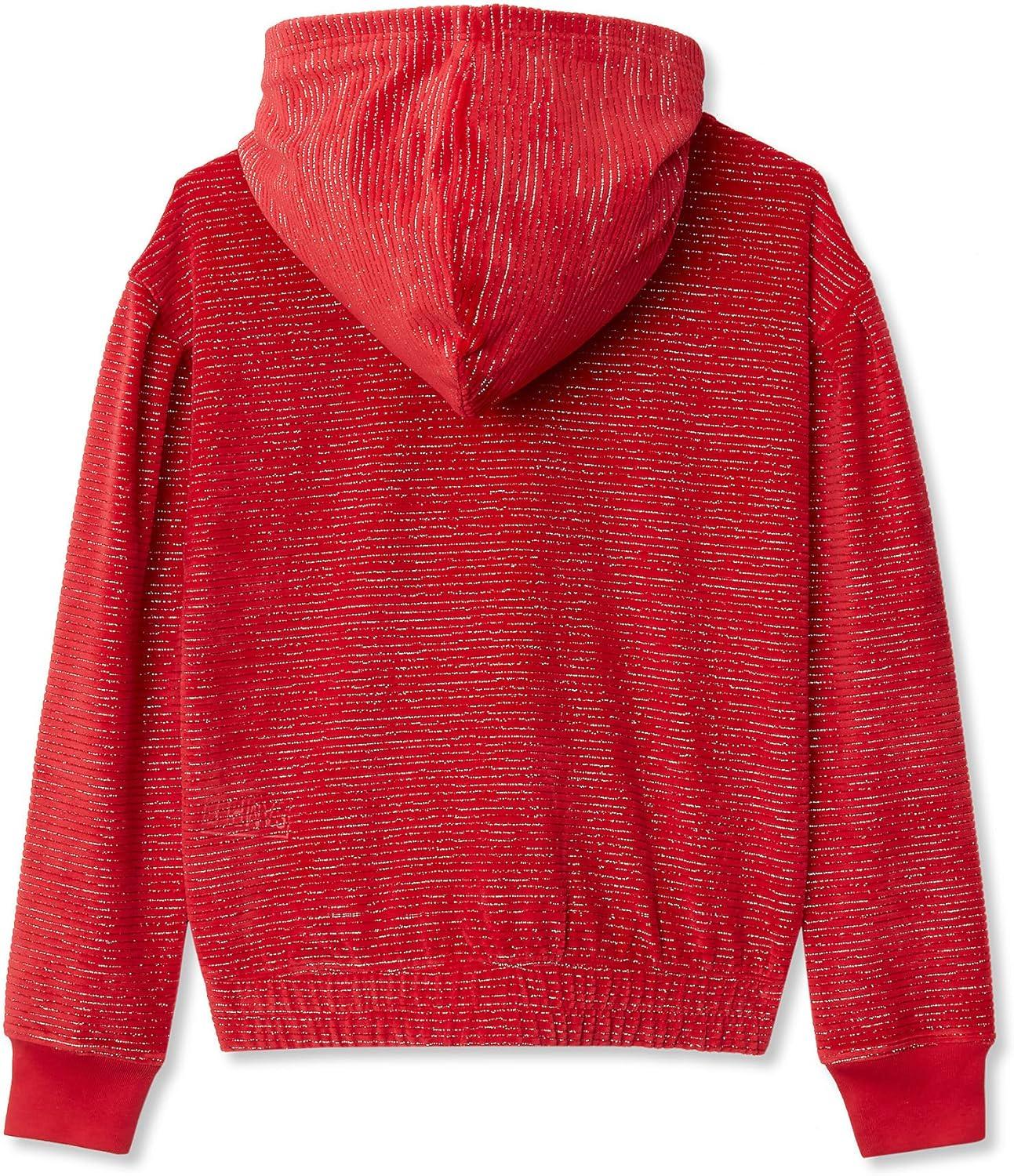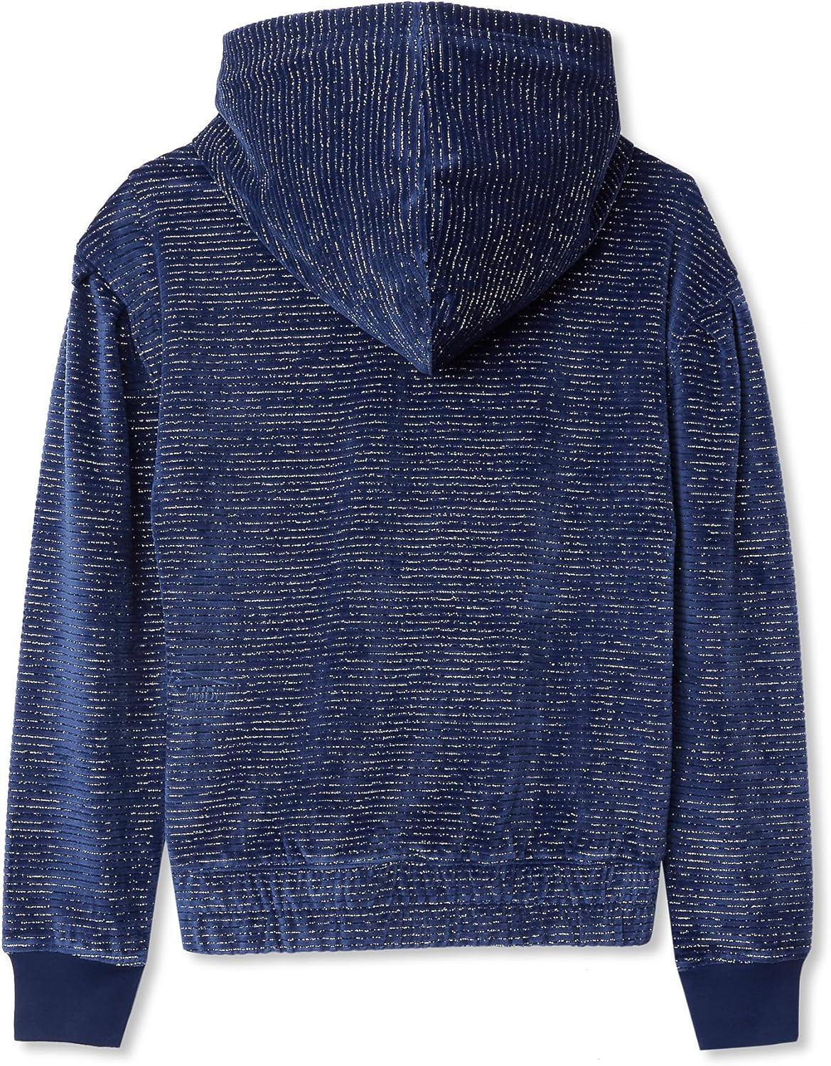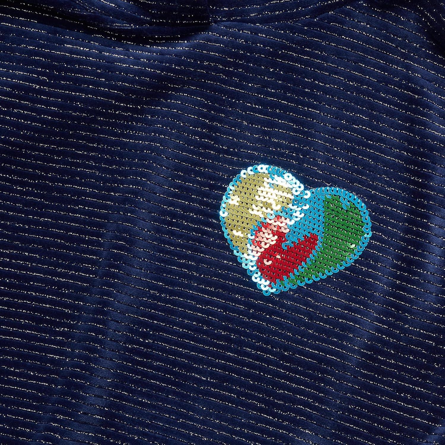 Lands’ End Girls Velour Hoodie Sweatshirt(Navy Multi Hearts Stripe)