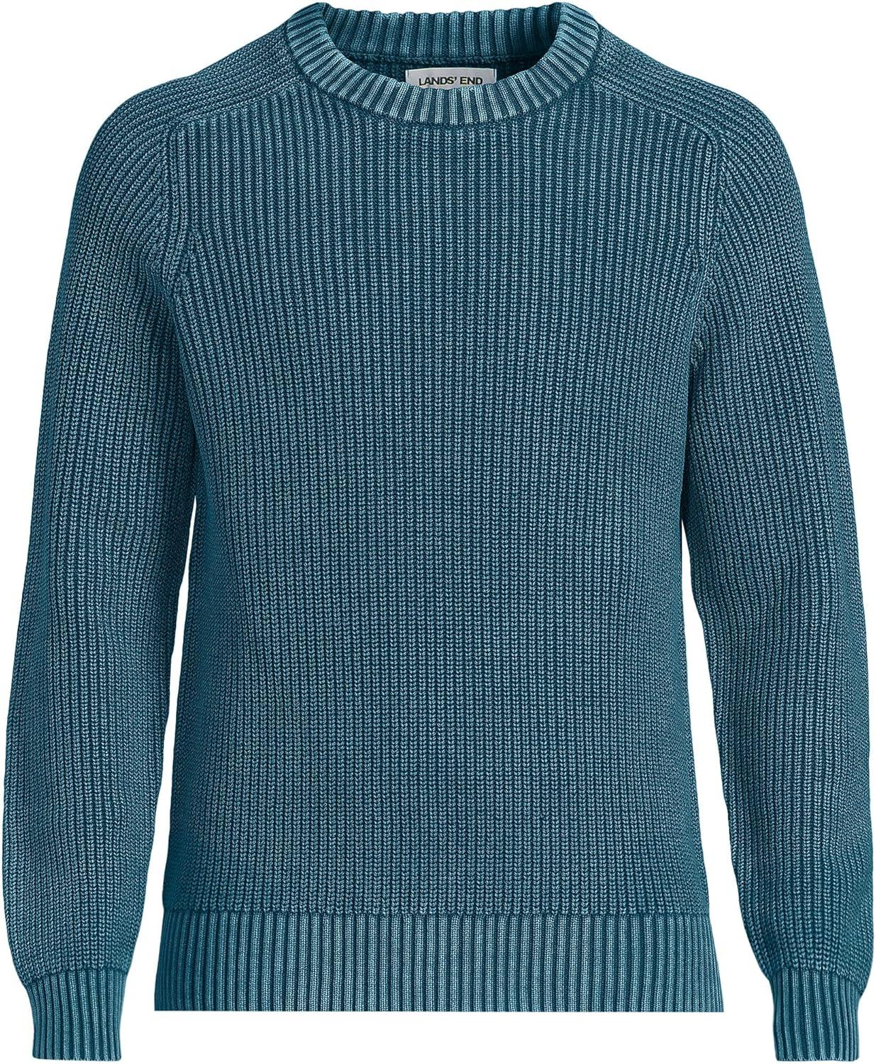 Lands’ End Men’s Drifter Cotton Crewneck Sweater(Baltic Teal)