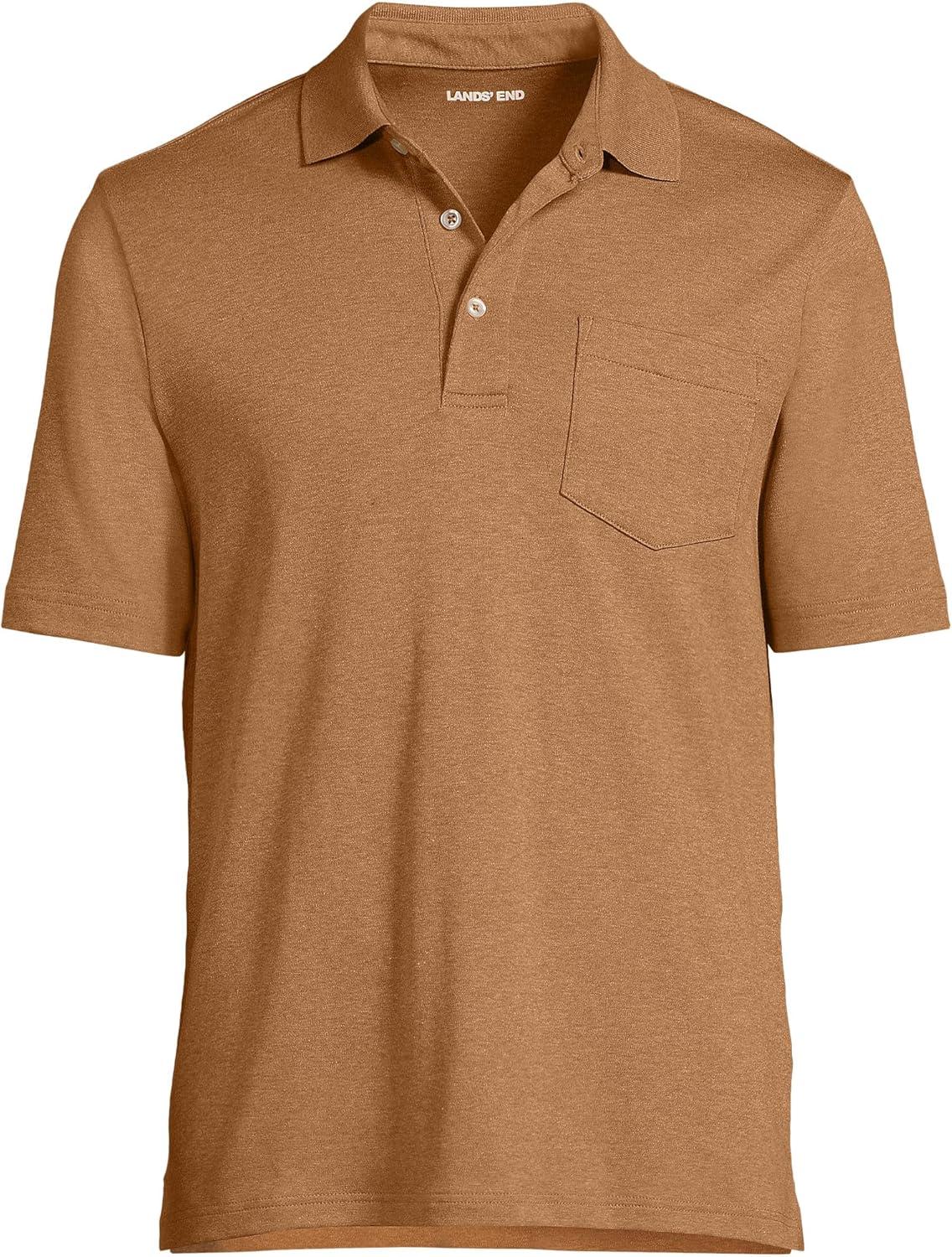 • Lands’ End Men’s Premium American-Grown Supima Cotton Polo Shirt, Short Sleeve, Pocket – Big & Tall(Canyon Camel Heather)