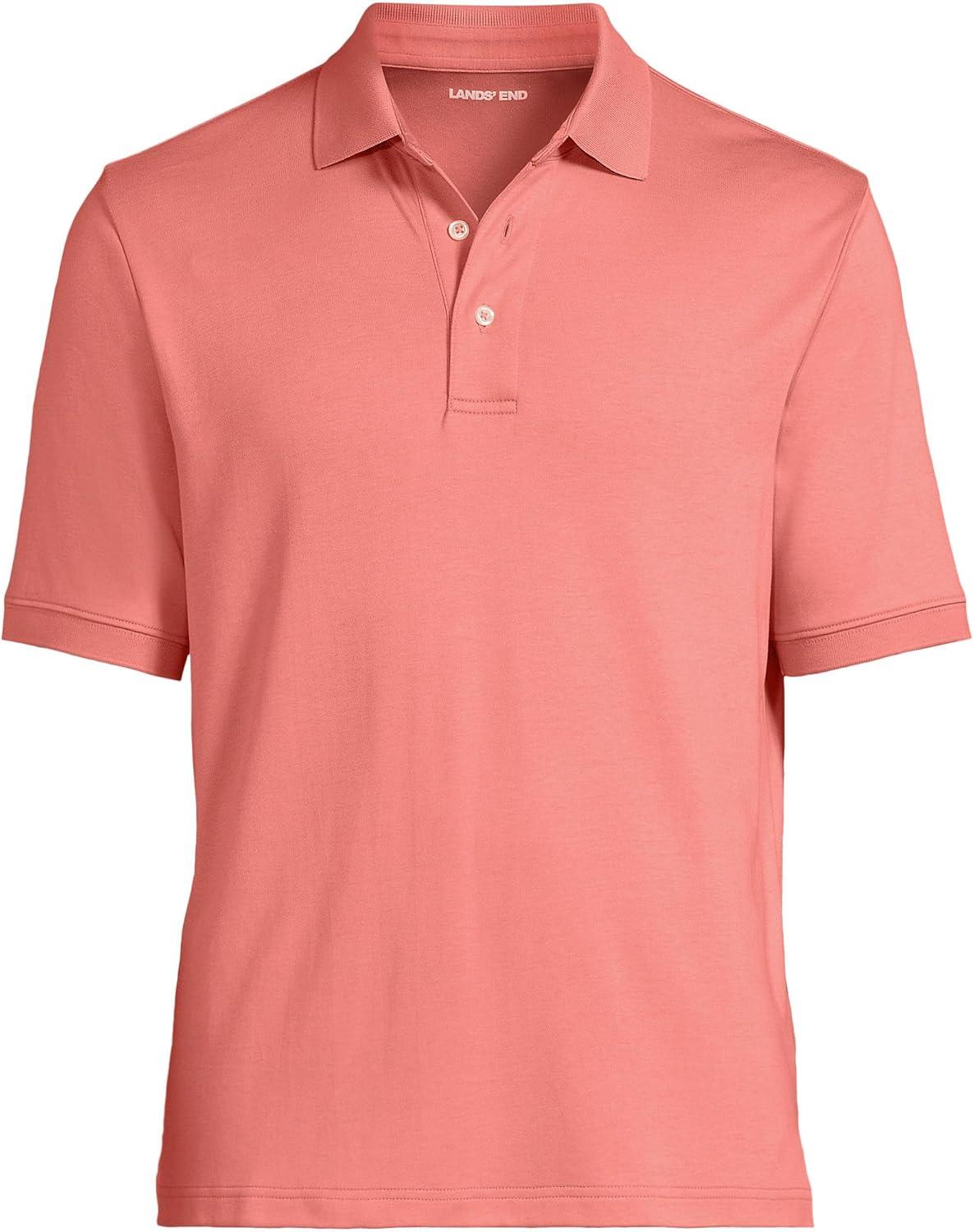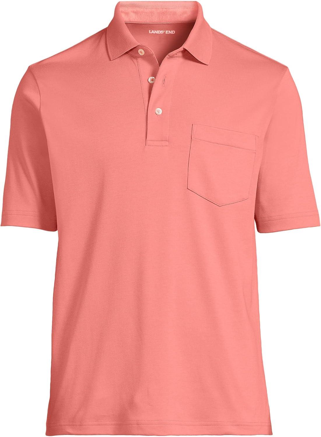 • Lands’ End Men’s Premium American-Grown Supima Cotton Polo Shirt, Short Sleeve, Pocket – Big & Tall(Coral Clay)