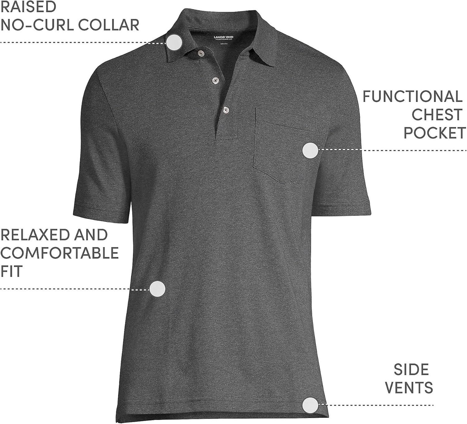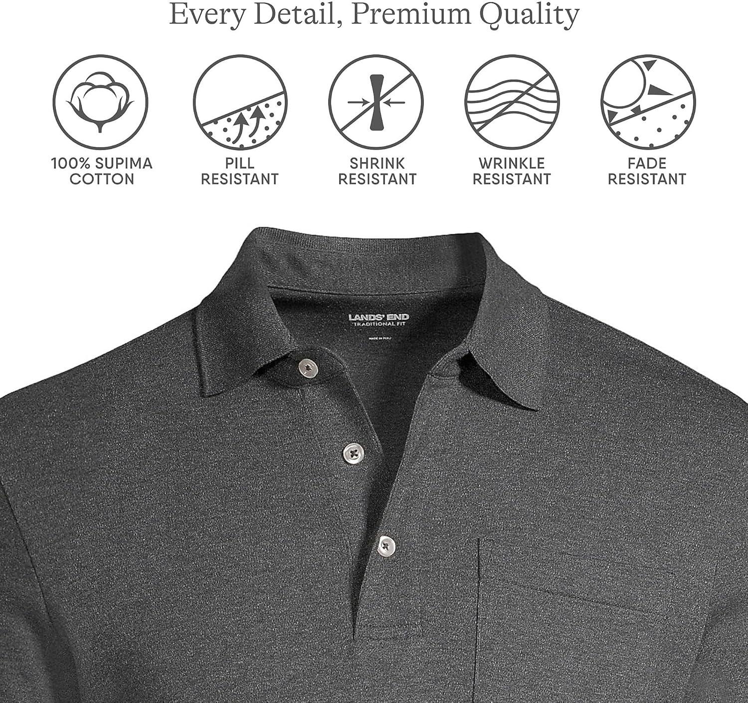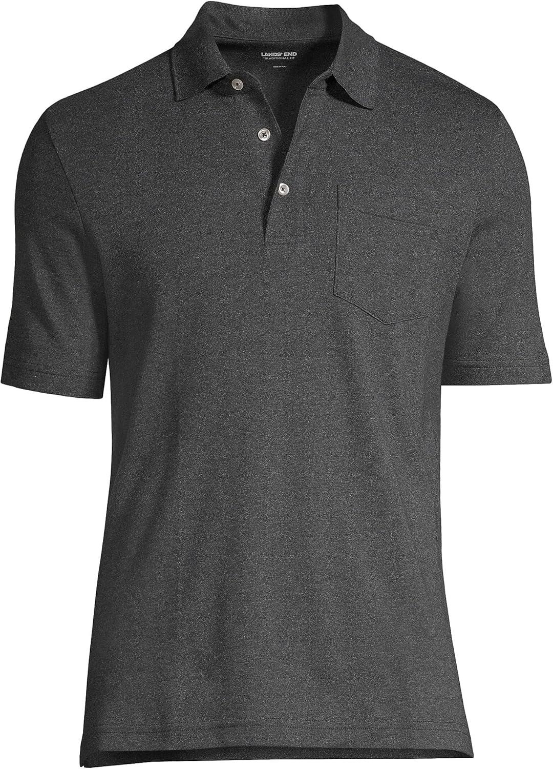 • Lands’ End Men’s Premium American-Grown Supima Cotton Polo Shirt, Short Sleeve, Pocket – Big & Tall(Dark Charcoal Heather)