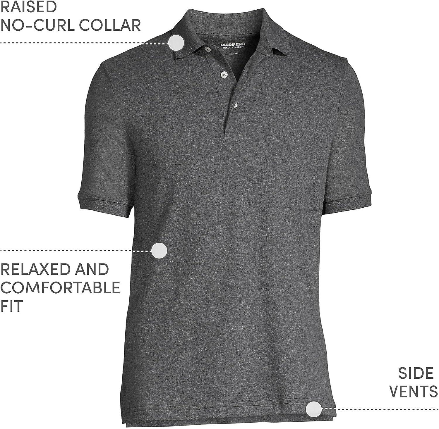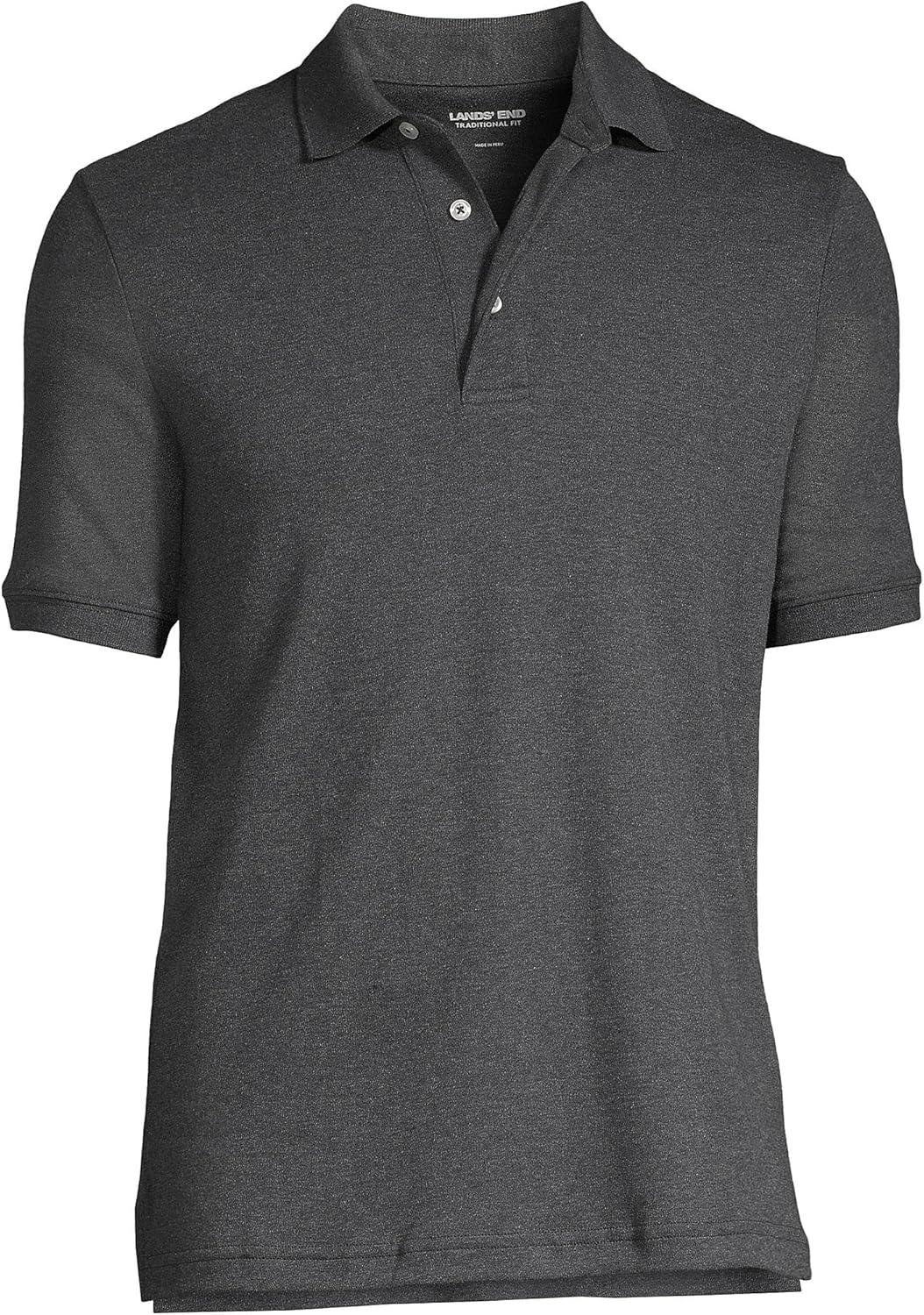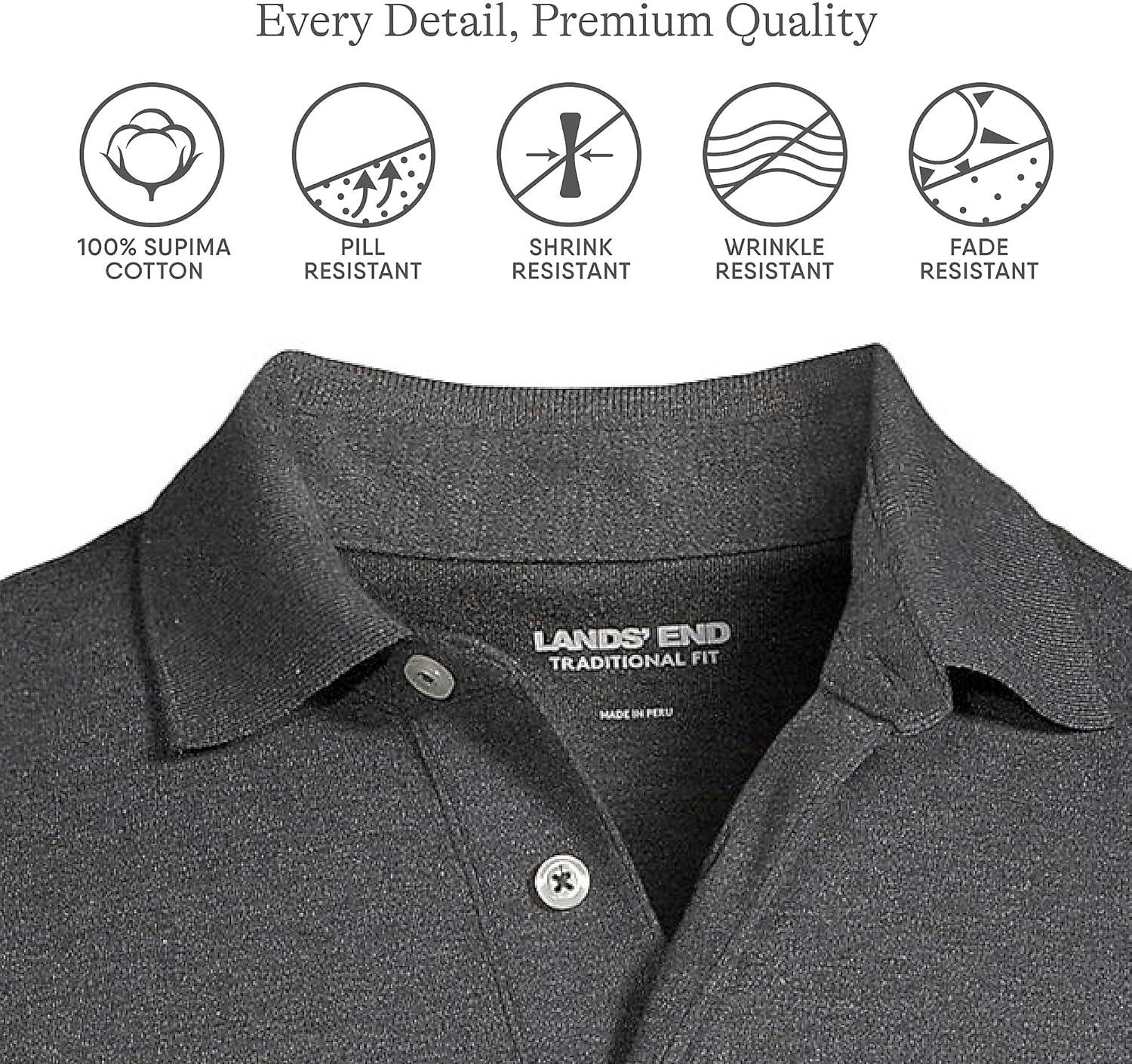 • Lands’ End Men’s Premium American-Grown Supima Cotton Polo Shirt, Short Sleeve, Pocket – Big & Tall(Dark Charcoal Heather)