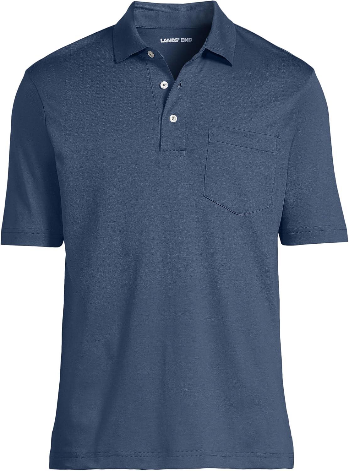 • Lands’ End Men’s Premium American-Grown Supima Cotton Polo Shirt, Short Sleeve, Pocket – Big & Tall(Nightfall Blue)