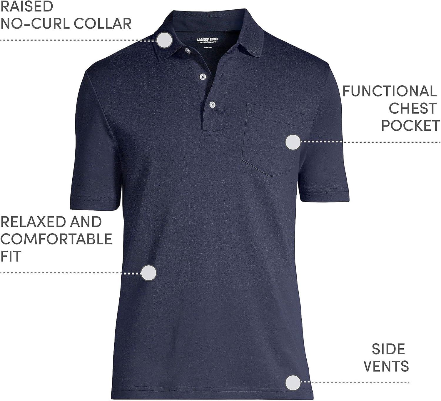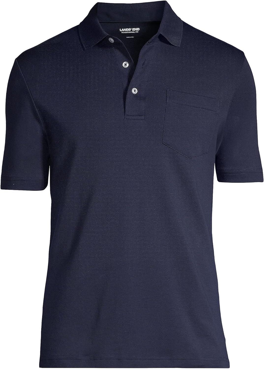 • Lands’ End Men’s Premium American-Grown Supima Cotton Polo Shirt, Short Sleeve, Pocket – Big & Tall(Radiant Navy)