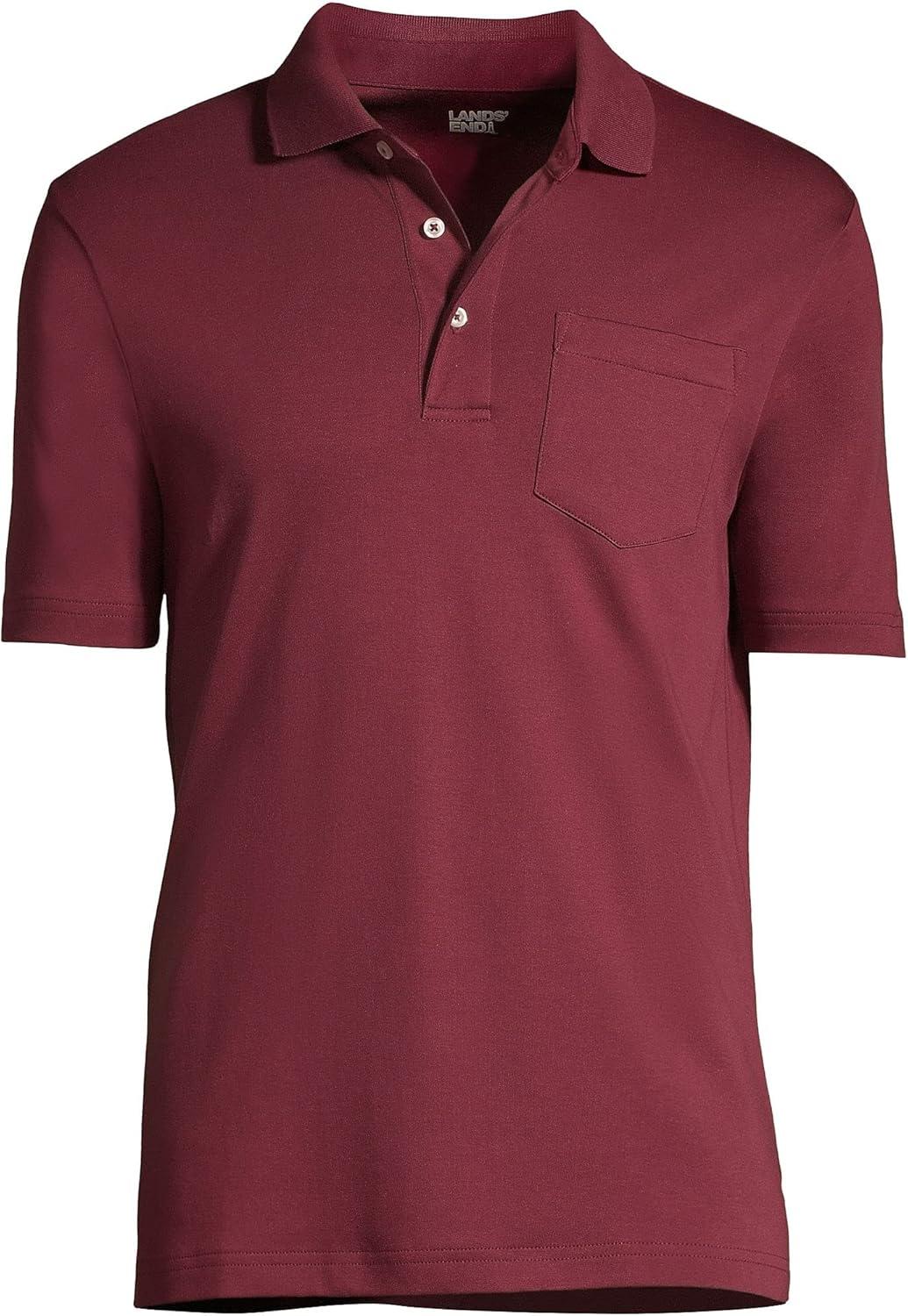 Lands’ End Men’s Premium American-Grown Supima Cotton Polo Shirt, Short Sleeve, Pocket – Big & Tall(Rich Burgundy)