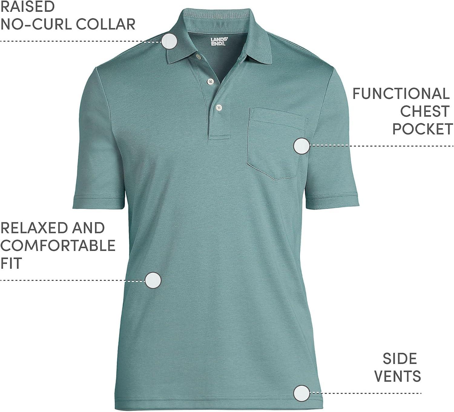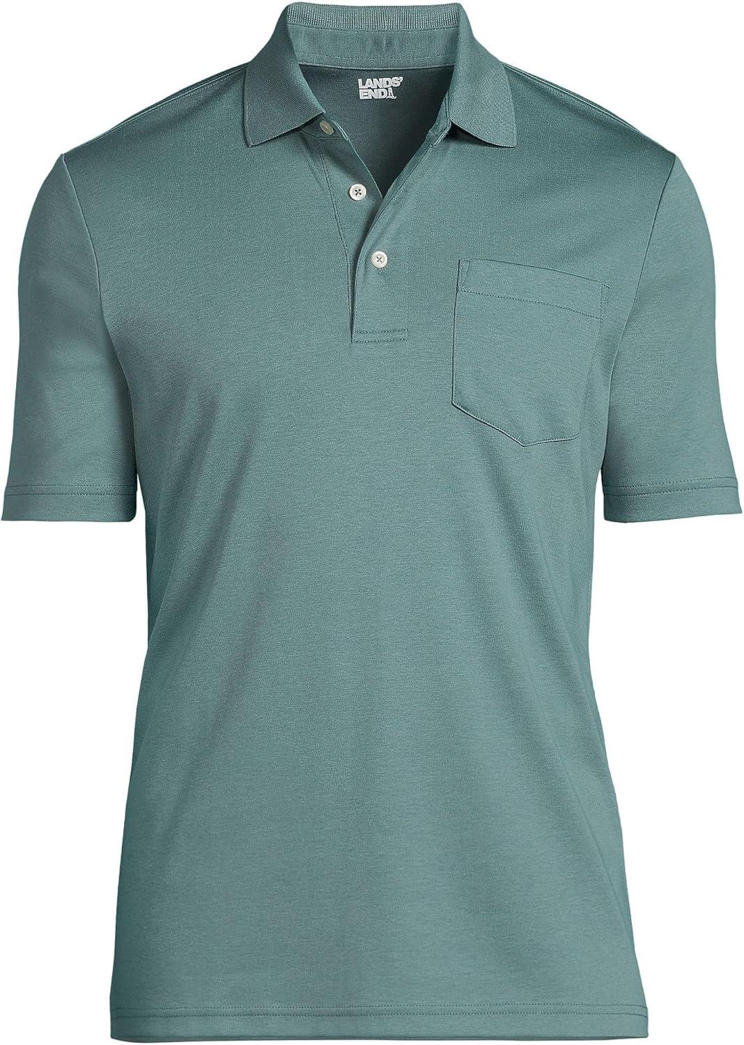 • Lands’ End Men’s Premium American-Grown Supima Cotton Polo Shirt, Short Sleeve, Pocket – Big & Tall(Tourmaline)
