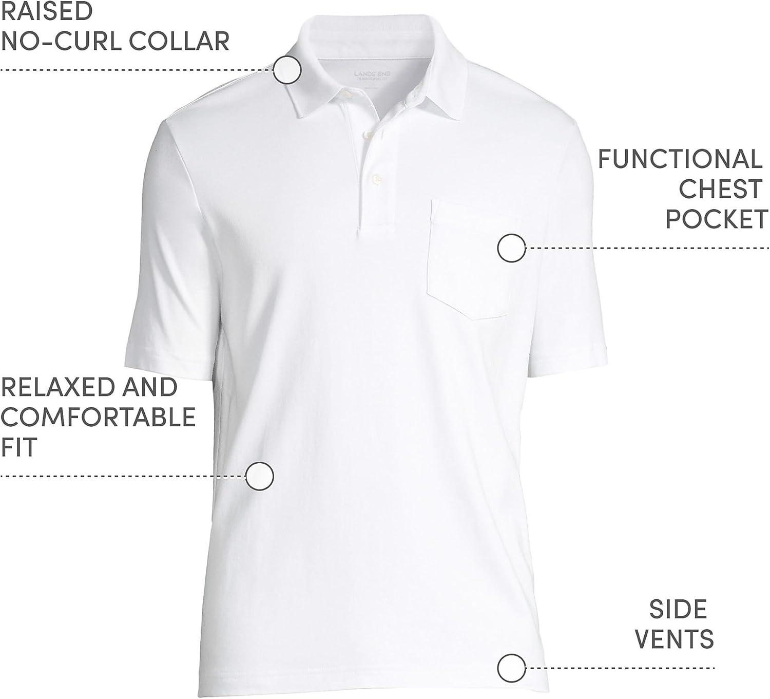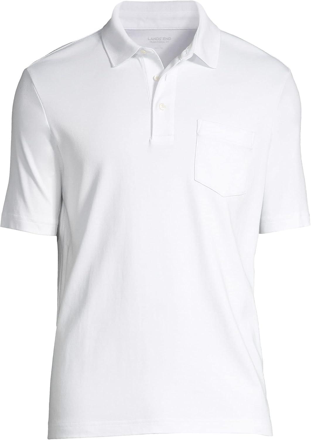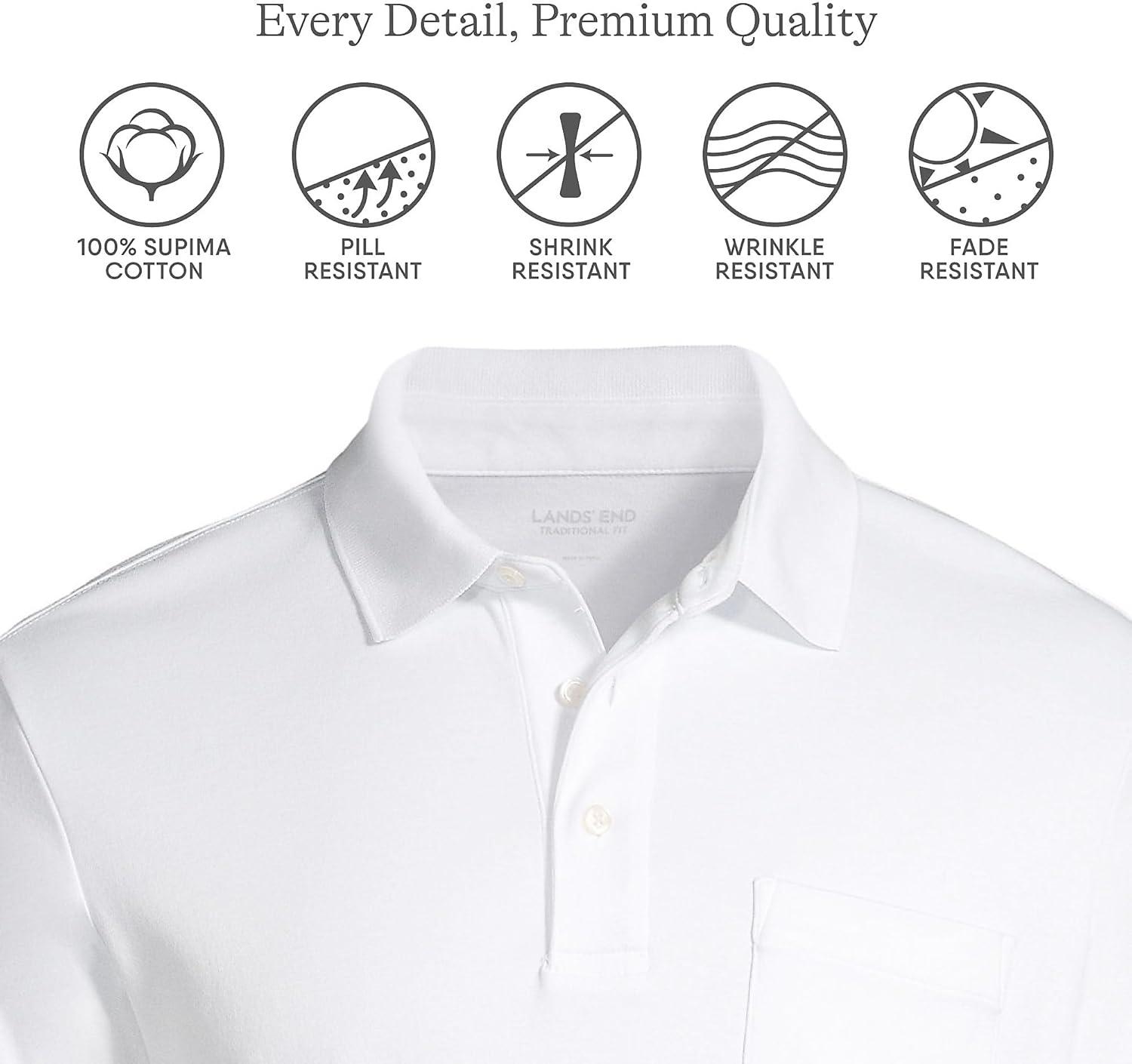 • Lands’ End Men’s Premium American-Grown Supima Cotton Polo Shirt, Short Sleeve, Pocket – Big & Tall(White)