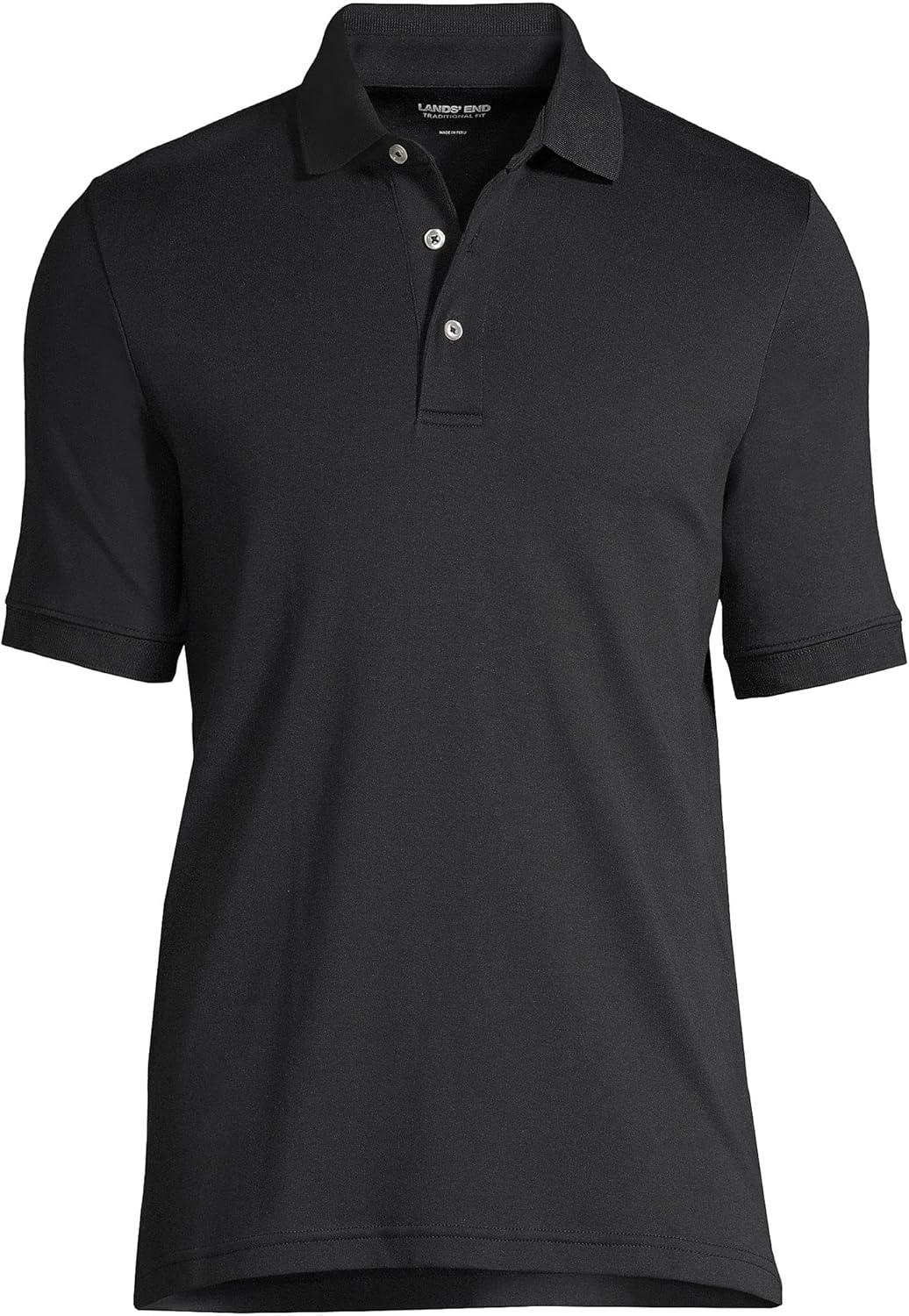 Lands’ End Men’s Short Sleeve American-Grown Supima Cotton Polo Shirt(Black)
