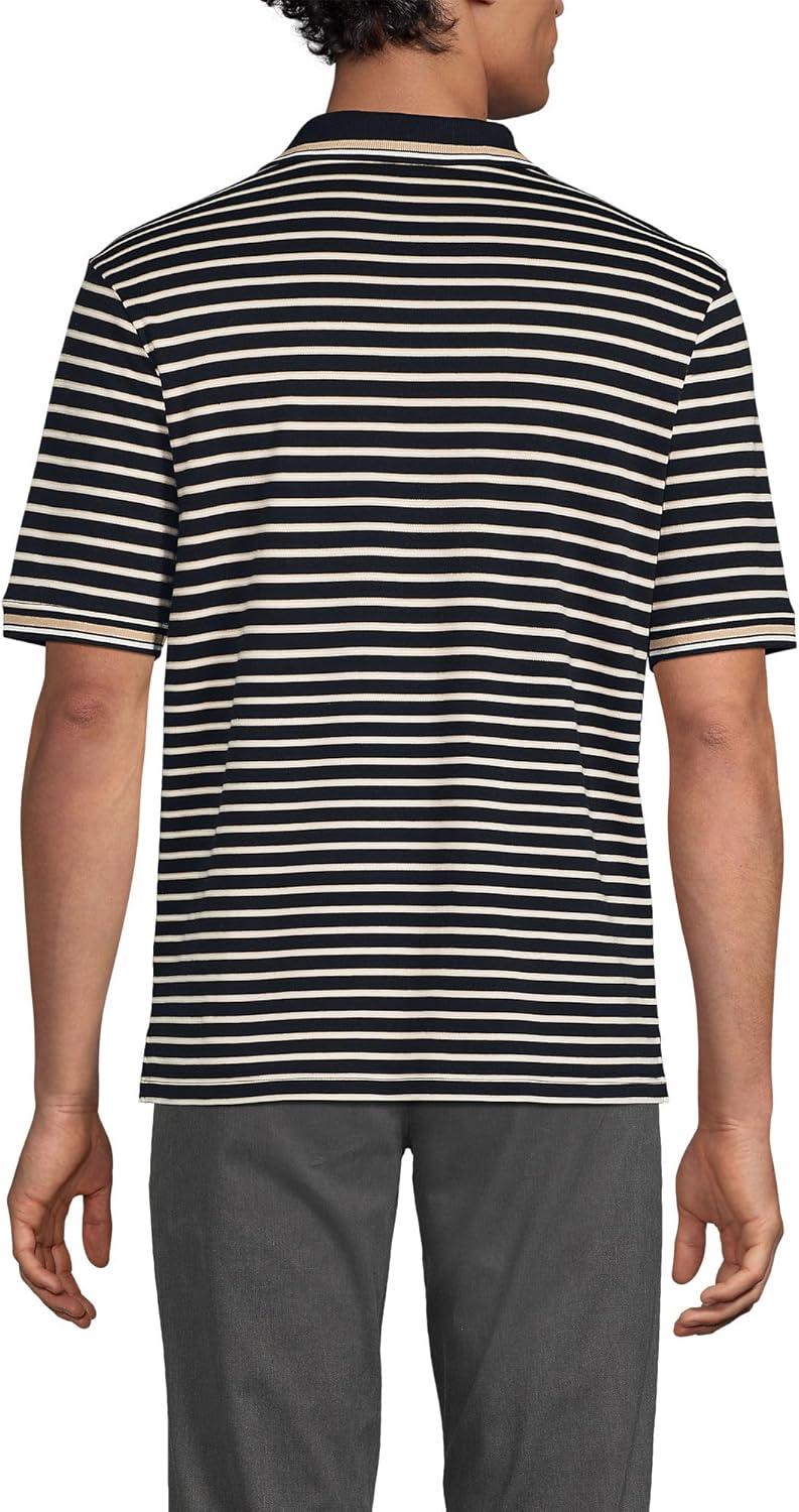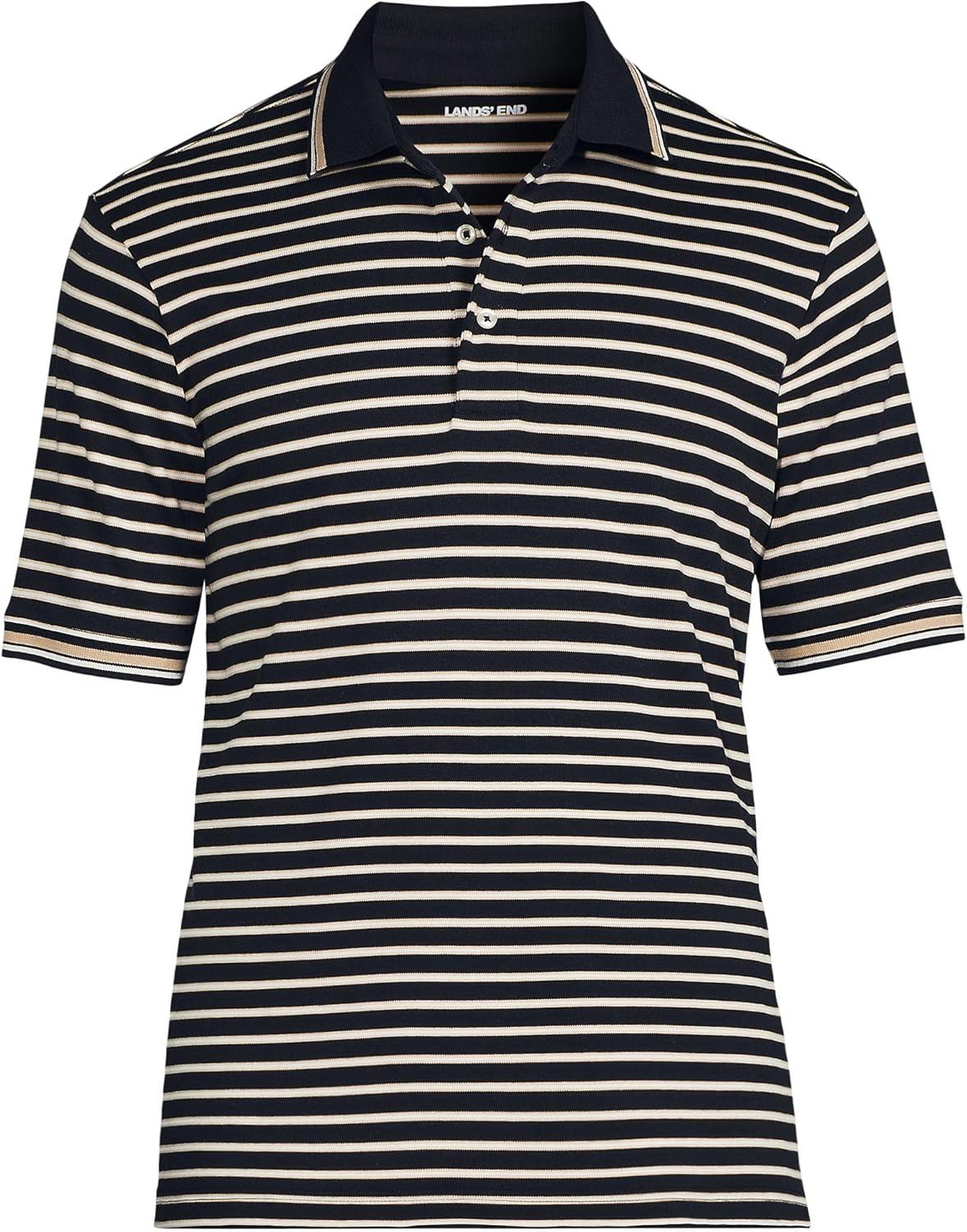 Lands’ End Men’s Short Sleeve American-Grown Supima Cotton Polo Shirt(Black/Warm Almond Stripe)