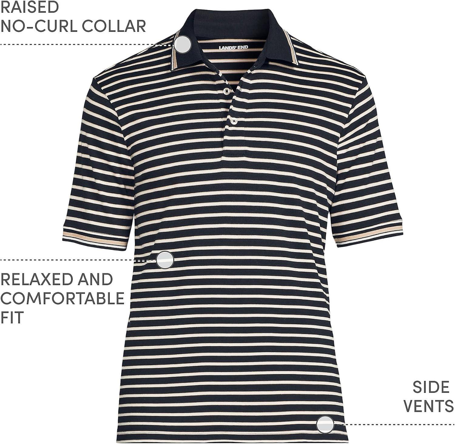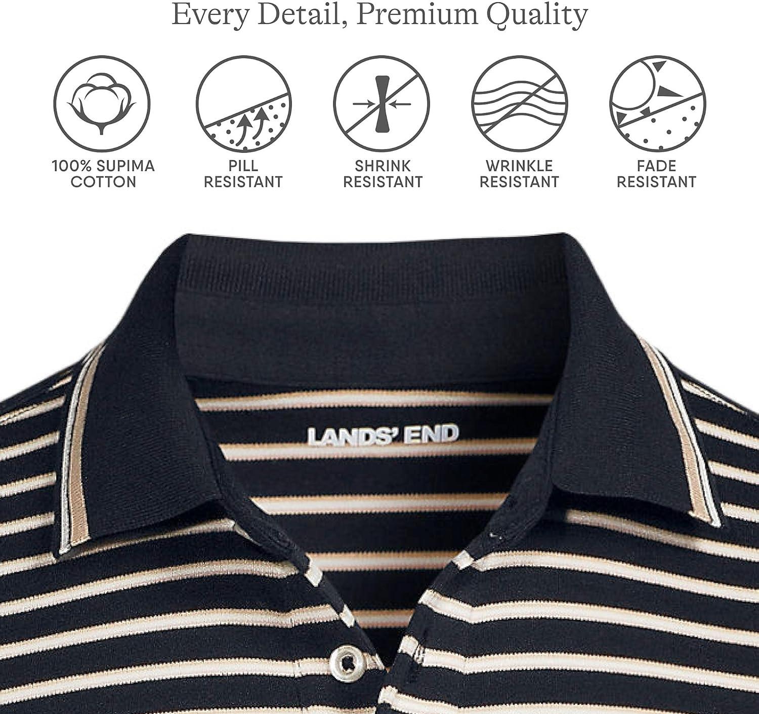 • Lands’ End Men’s Short Sleeve American-Grown Supima Cotton Polo Shirt(Black/Warm Almond Stripe)