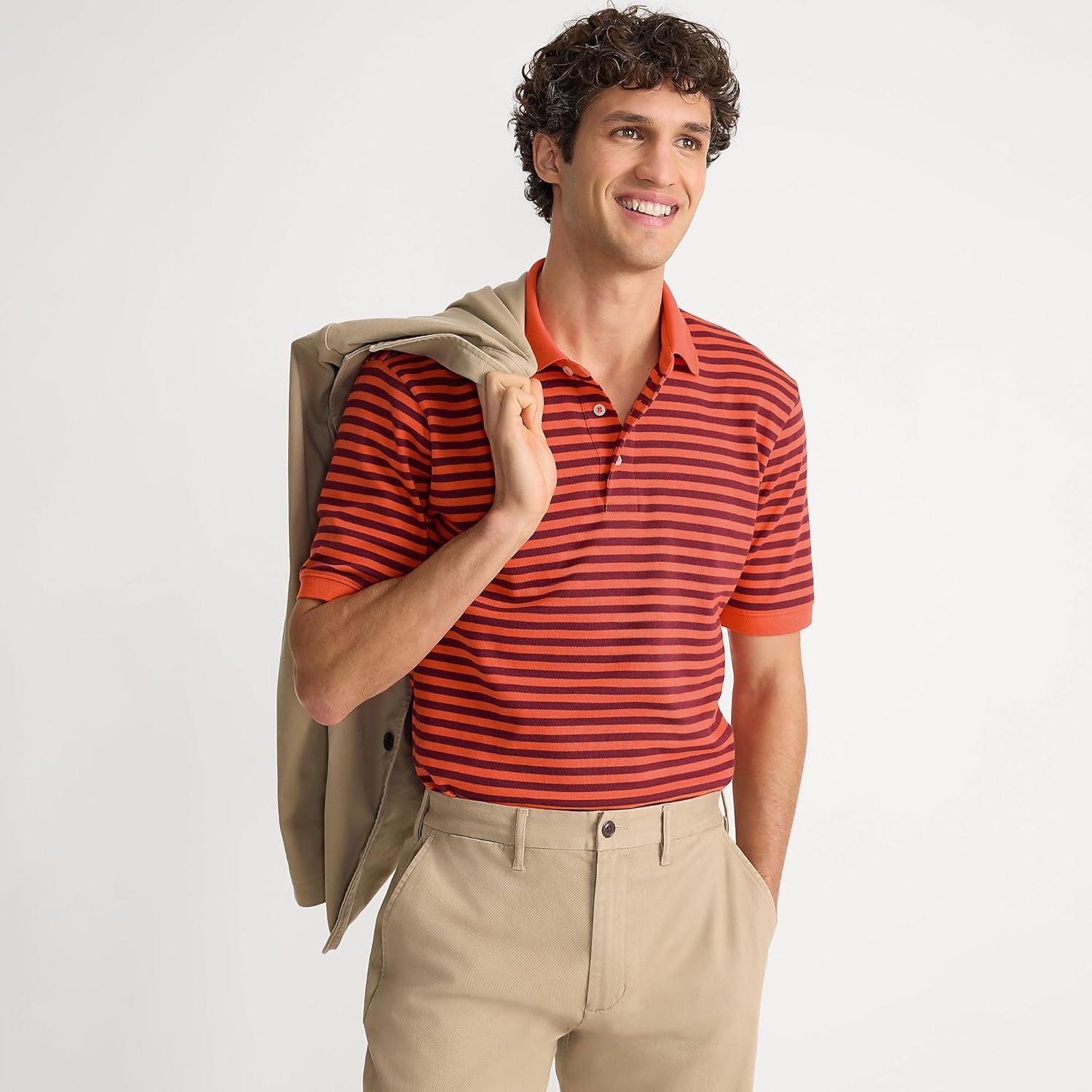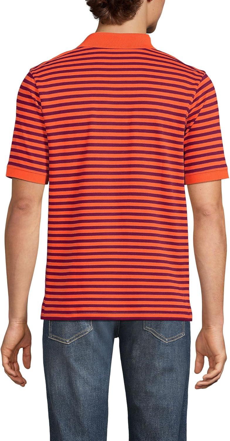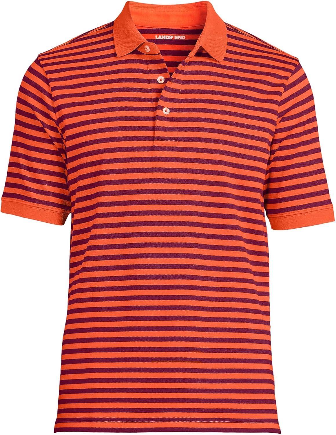 Lands’ End Men’s Short Sleeve American-Grown Supima Cotton Polo Shirt(Burgundy/Persimmon Stripe)