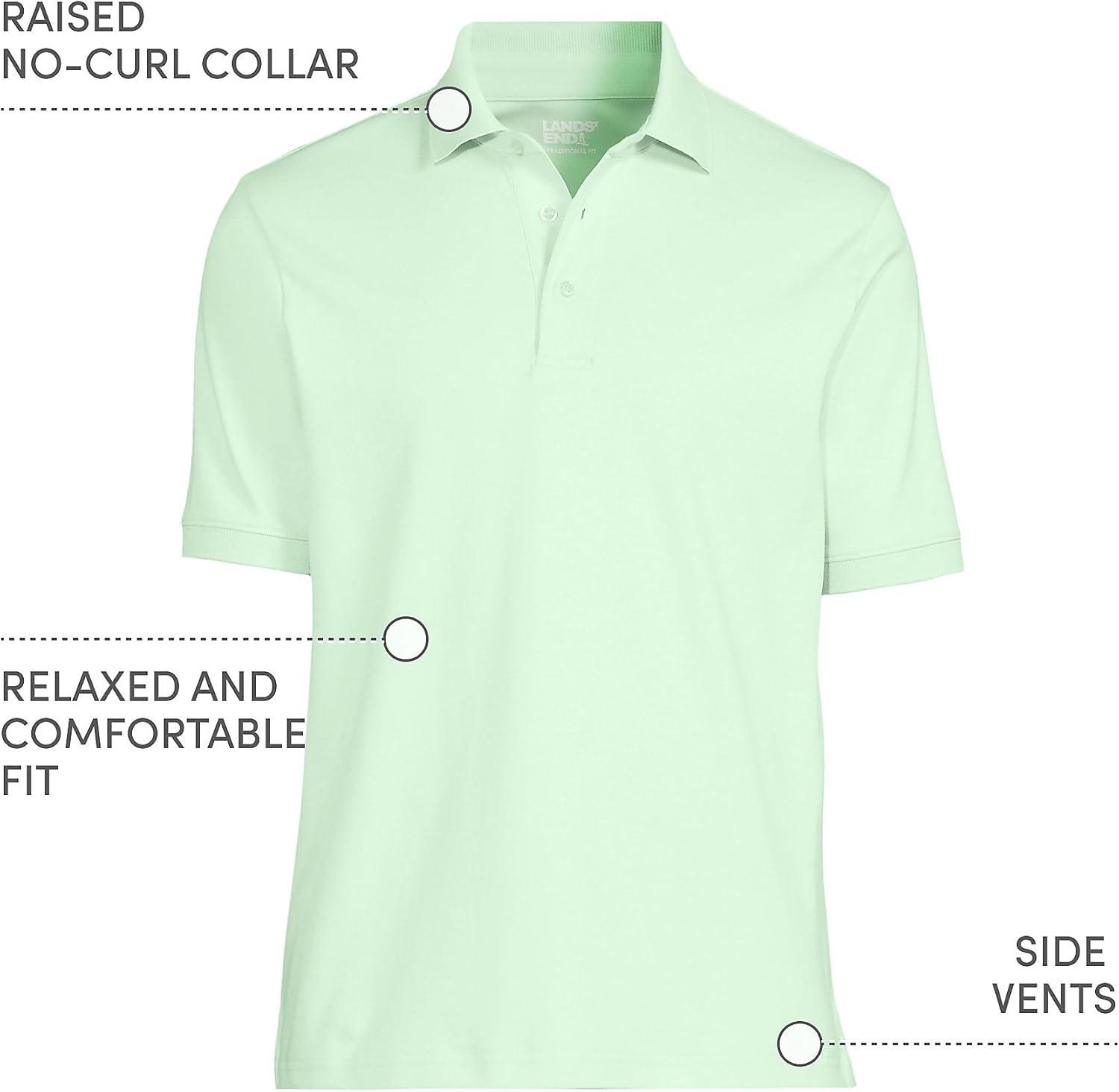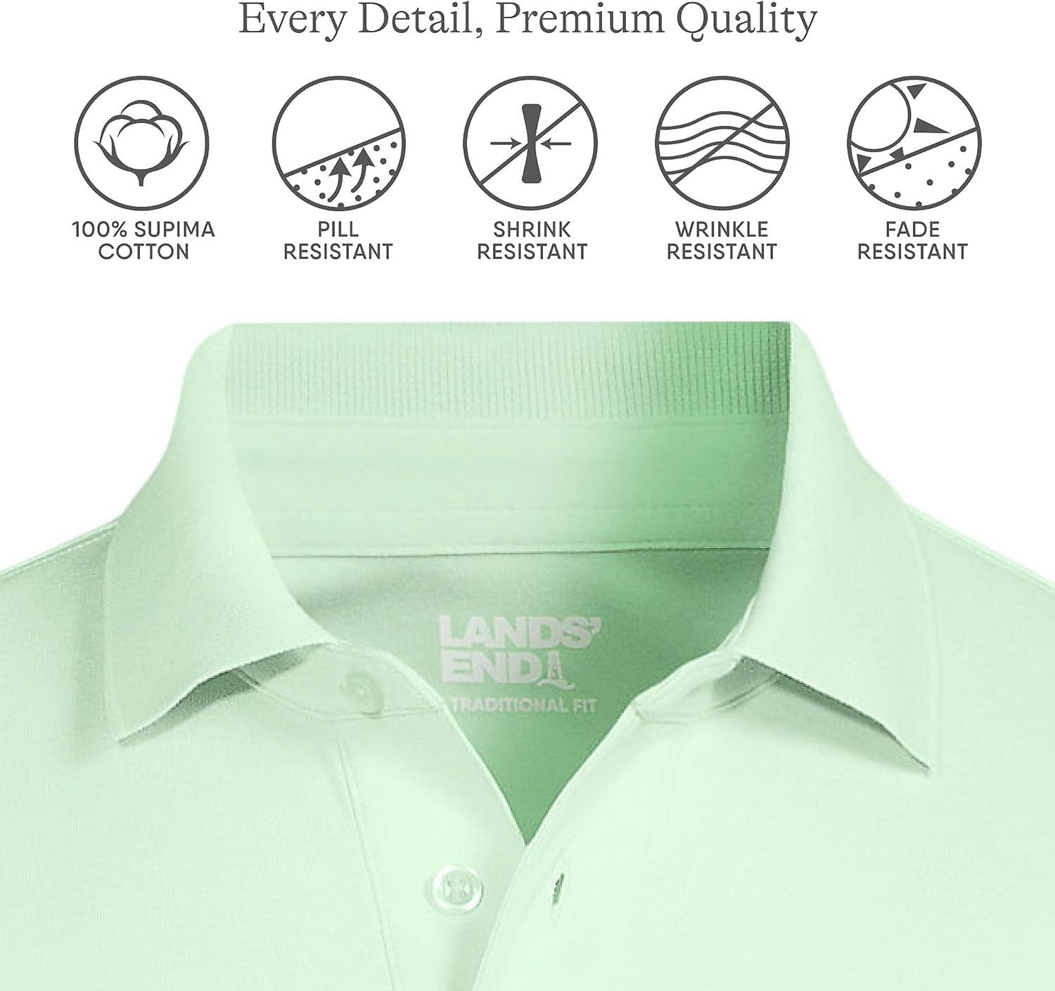• Lands’ End Men’s Short Sleeve American-Grown Supima Cotton Polo Shirt(Icy Mint Green)