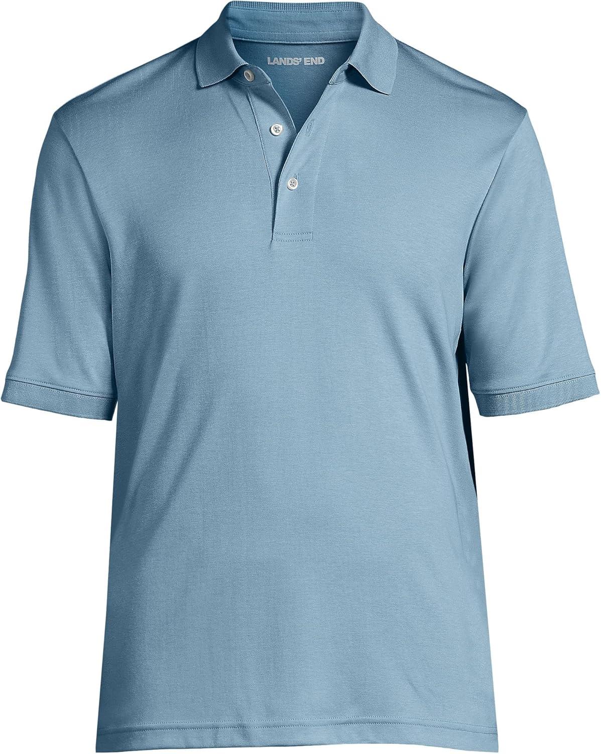 Lands’ End Men’s Short Sleeve American-Grown Supima Cotton Polo Shirt(Light Storm Blue)