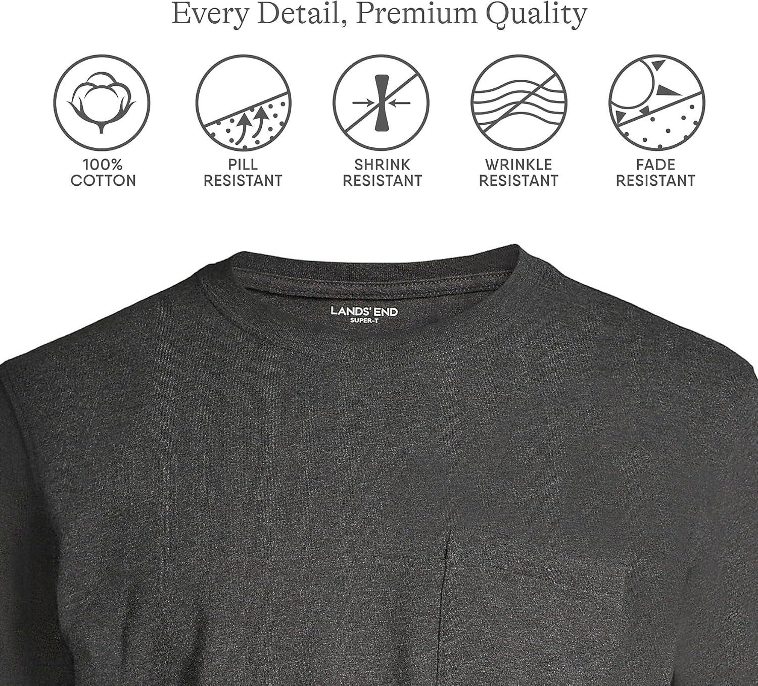 Lands’ End Men’s Super-T Short Sleeve T-Shirt with Pocket(Dark Charcoal Heather)