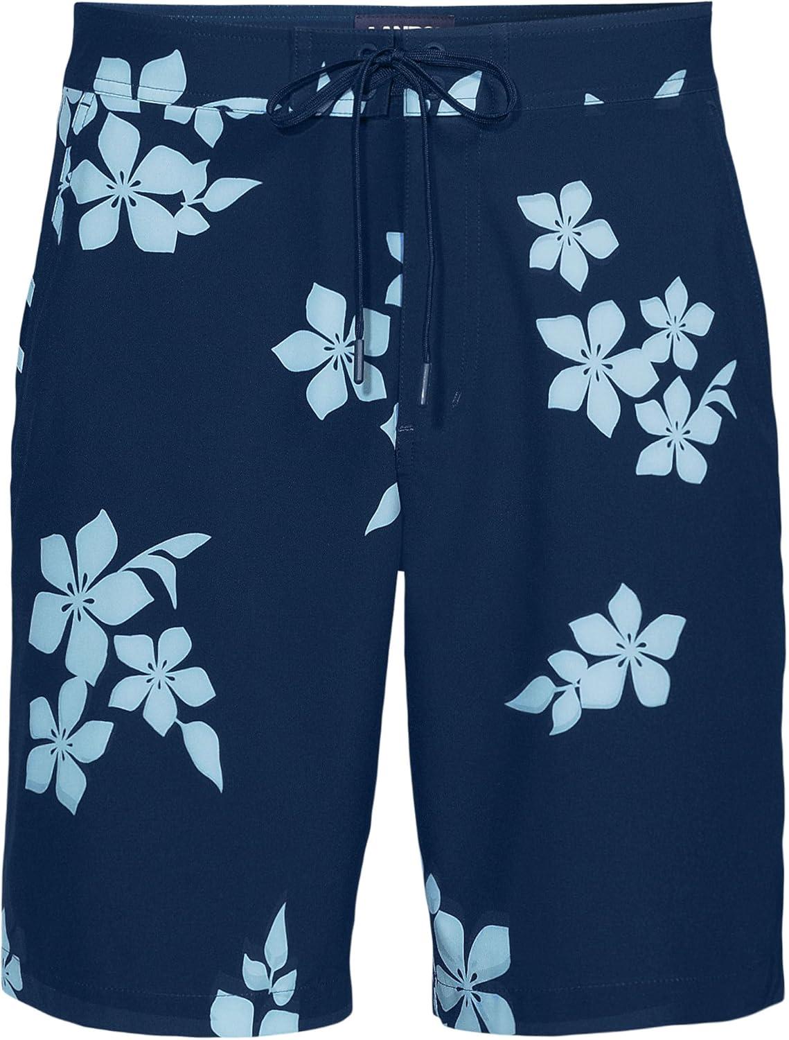 Lands’ End Men’s 9″ Quick Dry Board Shorts(Navy/Dusty Blue Phlox Floral)