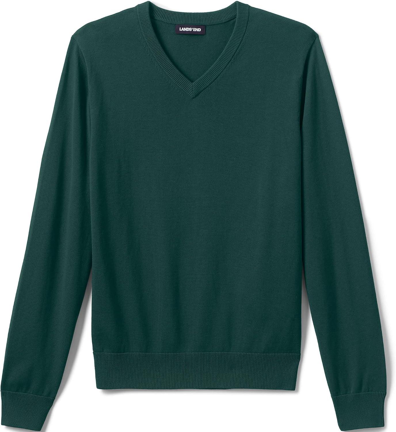 Lands’ End School Uniform Men’s Cotton Modal Fine Gauge V-Neck Sweater(Evergreen)