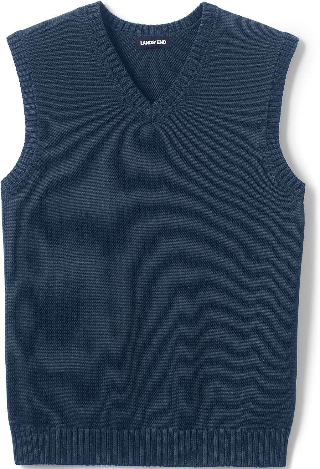 Lands’ End School Uniform Men’s Cotton Modal Sweater Vest(Classic Navy)