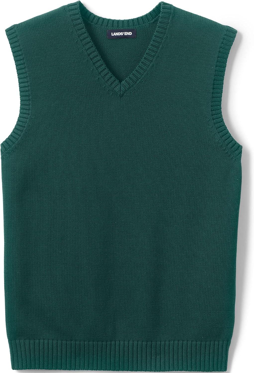 Lands’ End School Uniform Men’s Cotton Modal Sweater Vest(Evergreen)