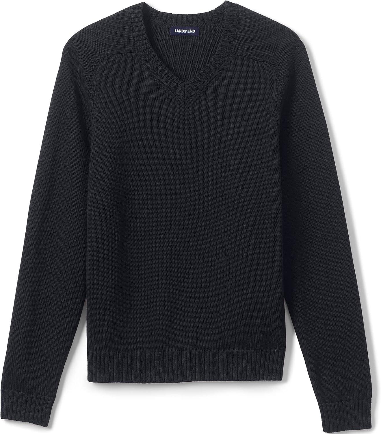 Lands’ End School Uniform Young Men’s Cotton Modal V-Neck Sweater(Black)