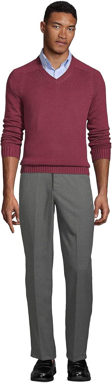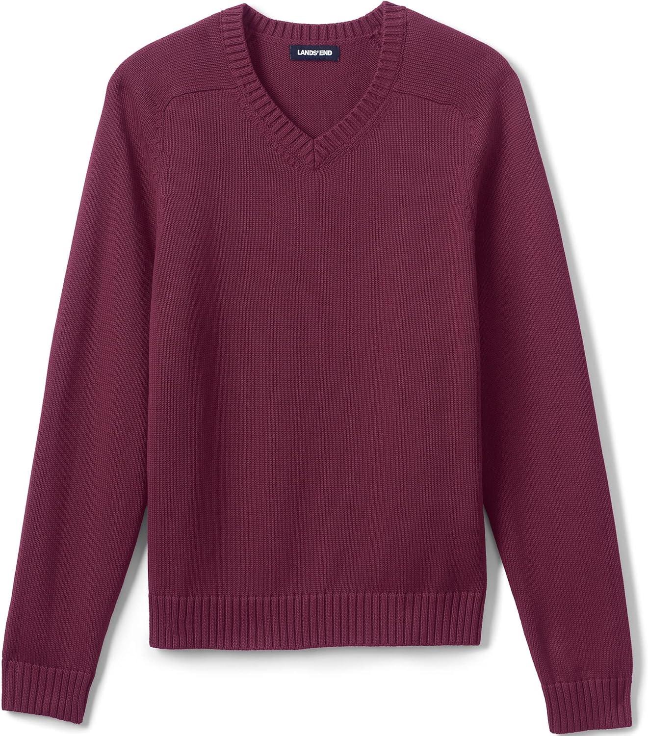 Lands’ End School Uniform Young Men’s Cotton Modal V-Neck Sweater(Burgundy)