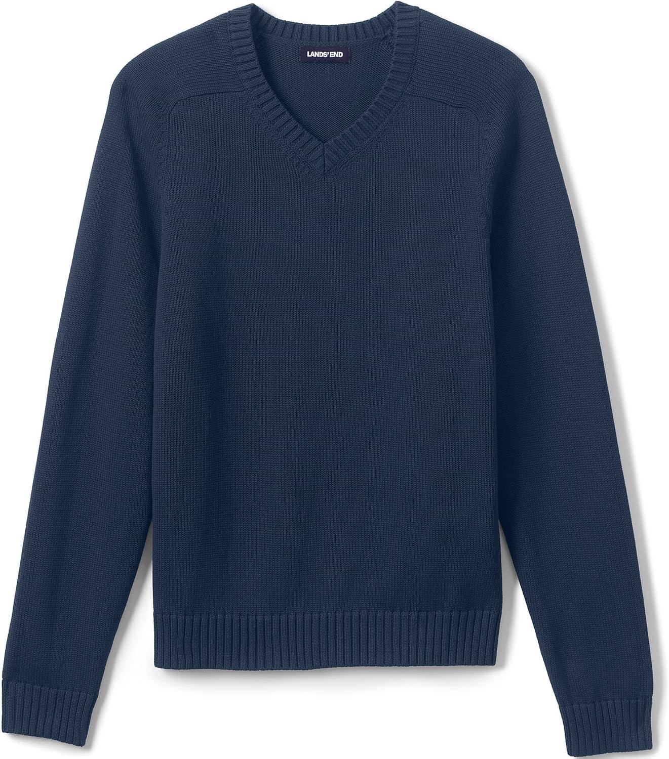 Lands’ End School Uniform Young Men’s Cotton Modal V-Neck Sweater(Classic Navy)