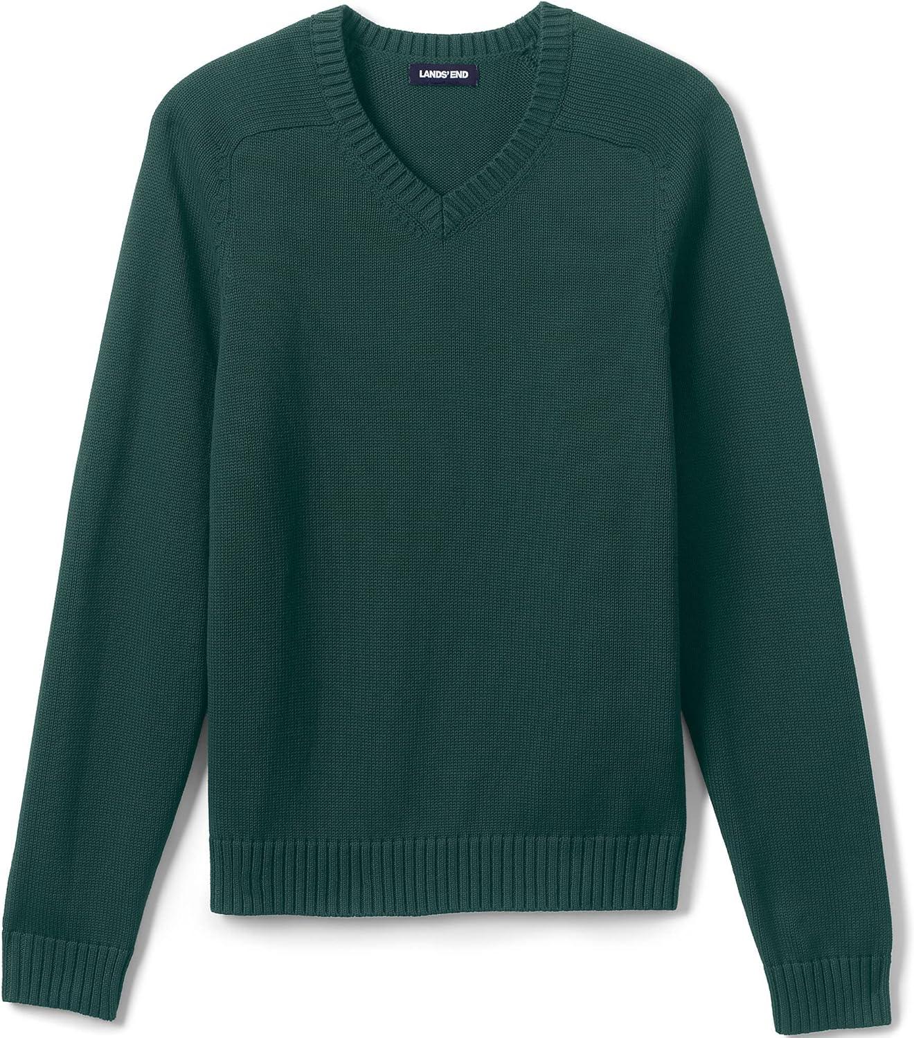 Lands’ End School Uniform Young Men’s Cotton Modal V-Neck Sweater(Evergreen)