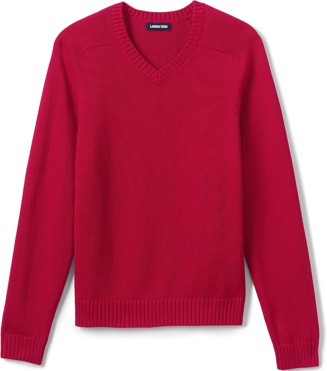 Lands’ End School Uniform Young Men’s Cotton Modal V-Neck Sweater(Red)