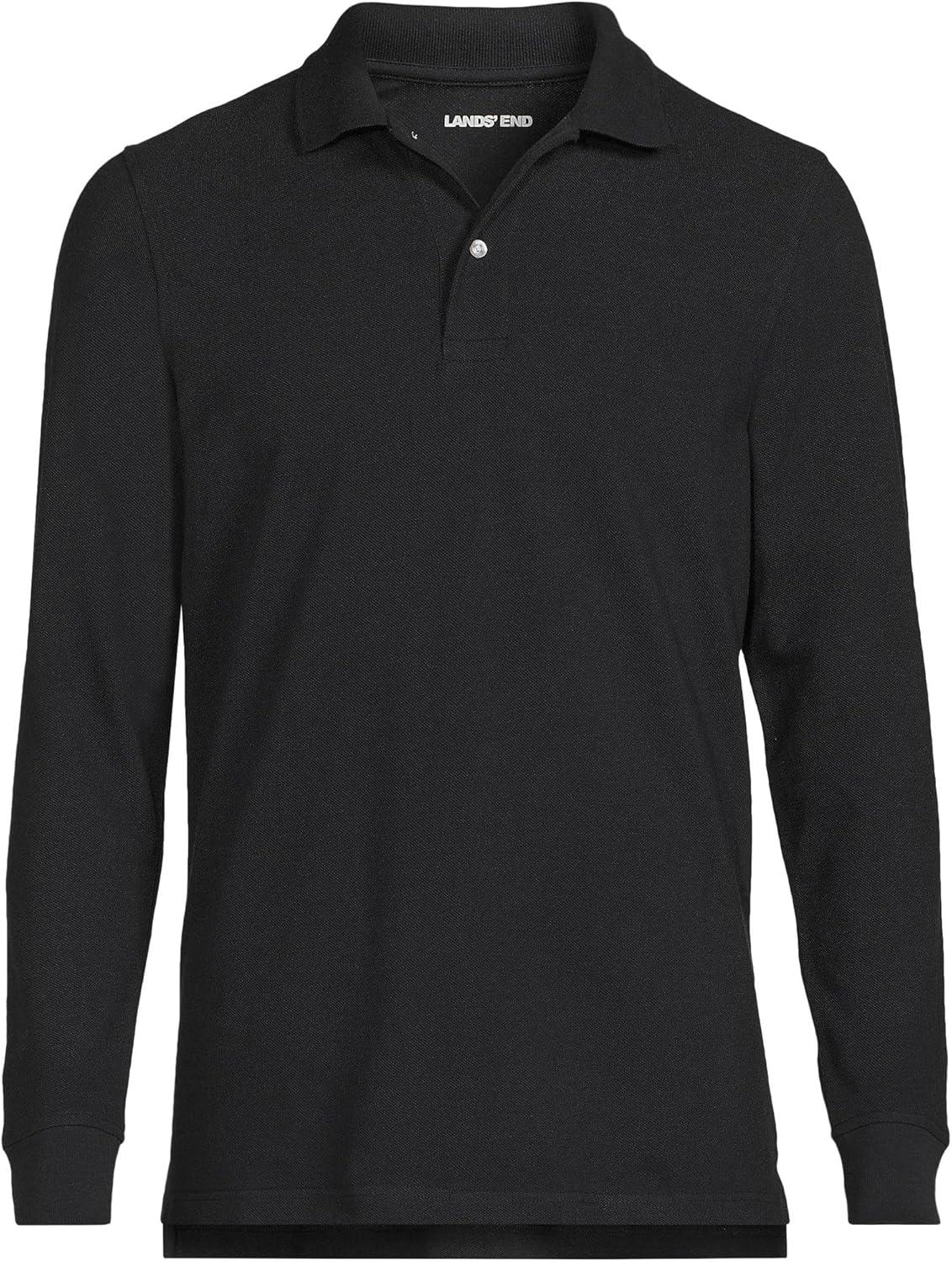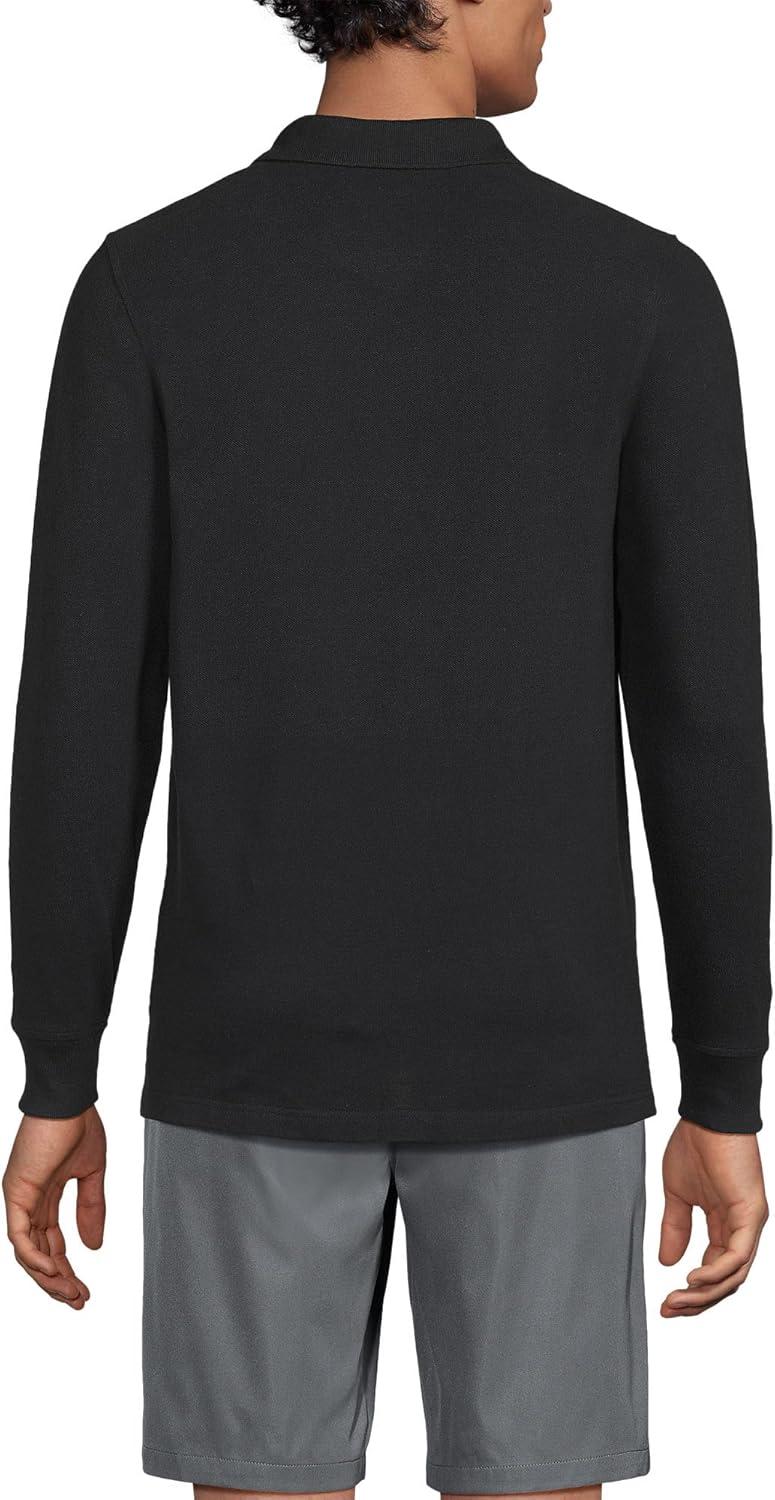 Lands’ End School Uniform Young Men’s Long Sleeve Mesh Polo Shirt(Black)