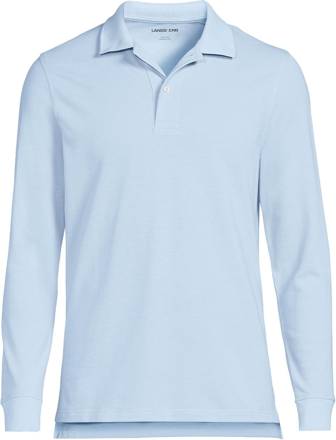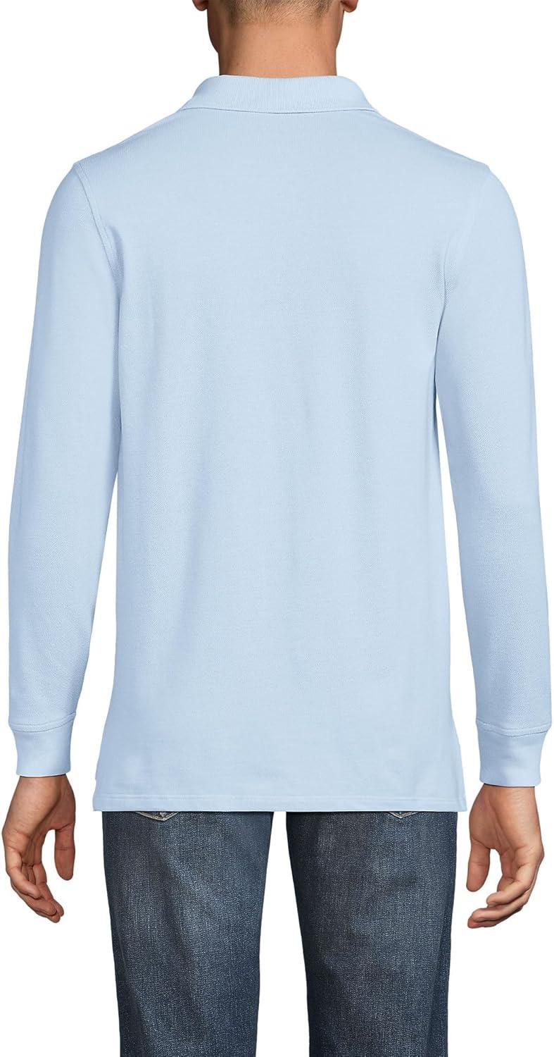 Lands’ End School Uniform Young Men’s Long Sleeve Mesh Polo Shirt(Blue)