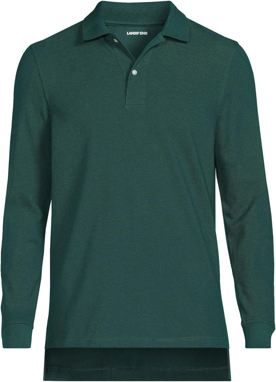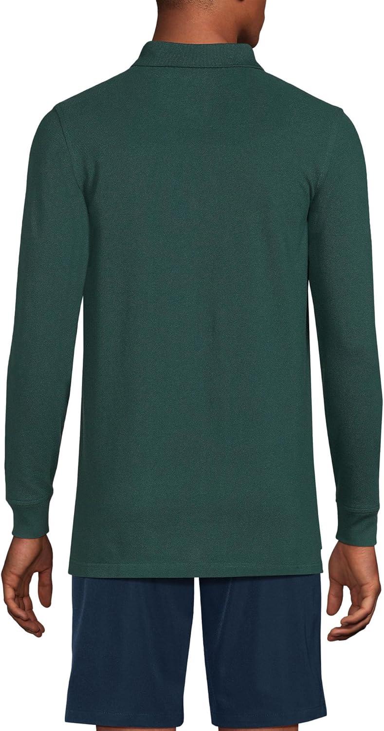 Lands’ End School Uniform Young Men’s Long Sleeve Mesh Polo Shirt(Evergreen)