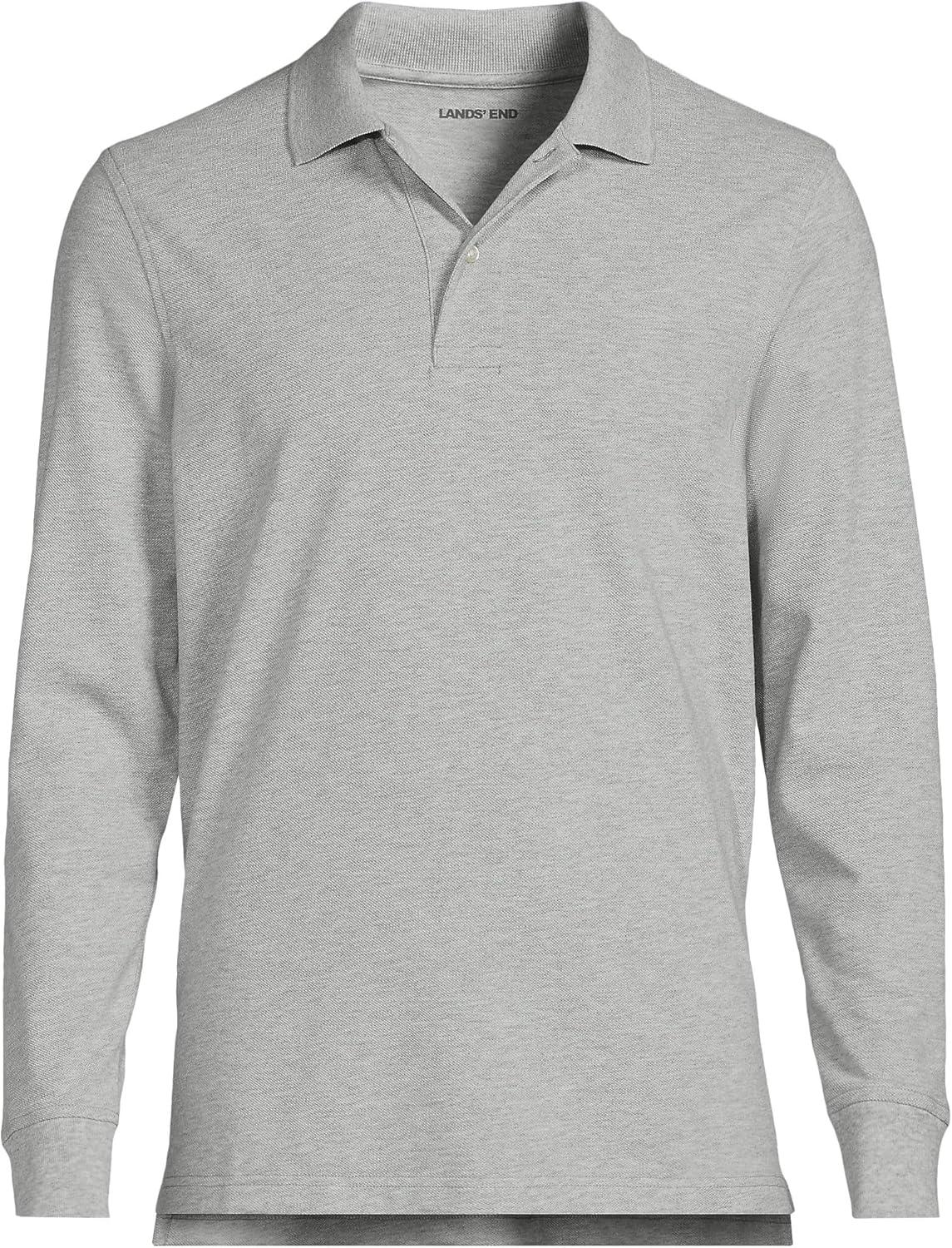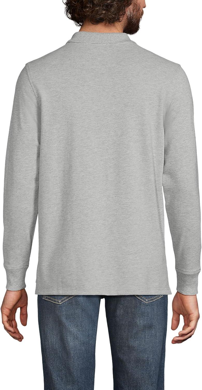 Lands’ End School Uniform Young Men’s Long Sleeve Mesh Polo Shirt(Gray Heather)