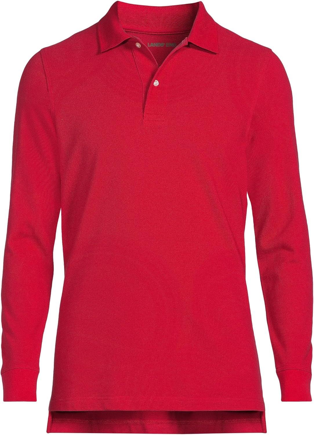Lands’ End School Uniform Young Men’s Long Sleeve Mesh Polo Shirt(Red)