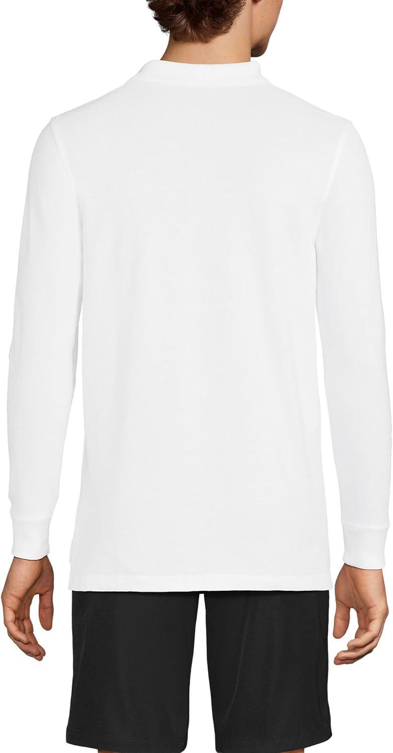 Lands’ End School Uniform Young Men’s Long Sleeve Mesh Polo Shirt(White)