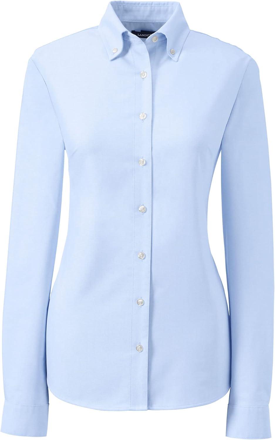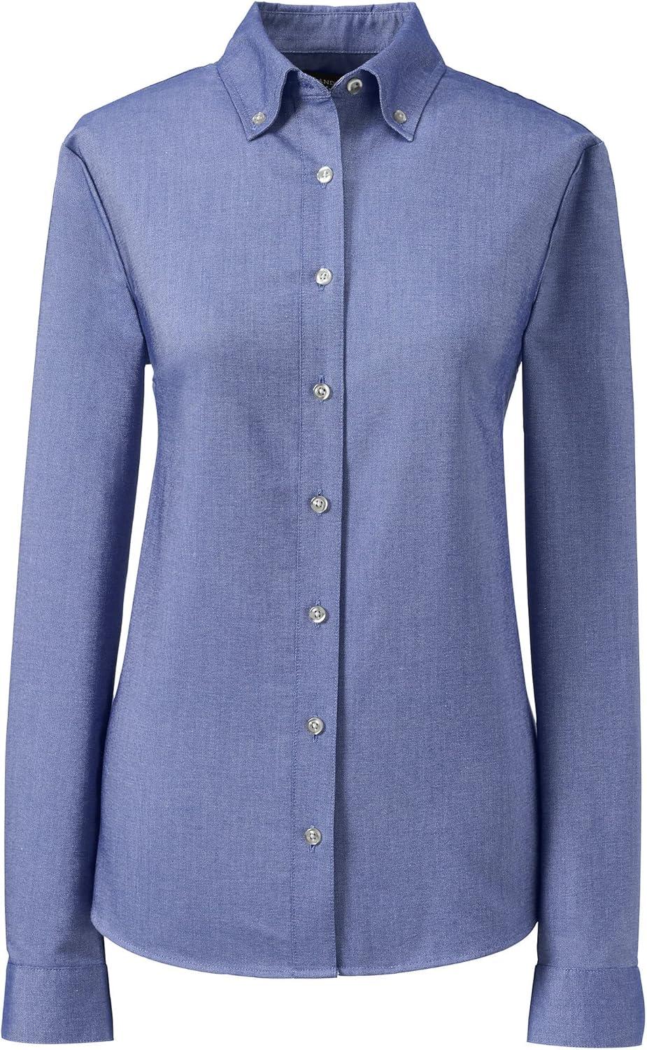 Lands’ End School Uniform Women’s Long Sleeve Oxford Dress Shirt(Blue)