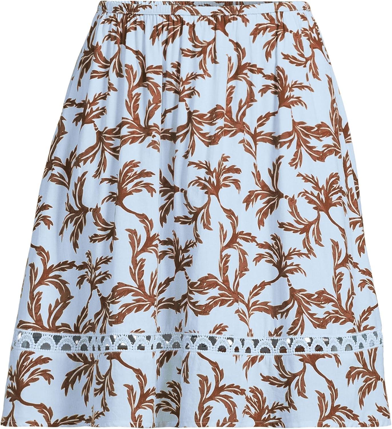 Lands’ End Women’s Voile Ladder Trim Mini Skirt(Soft Ice Blue Leaves)