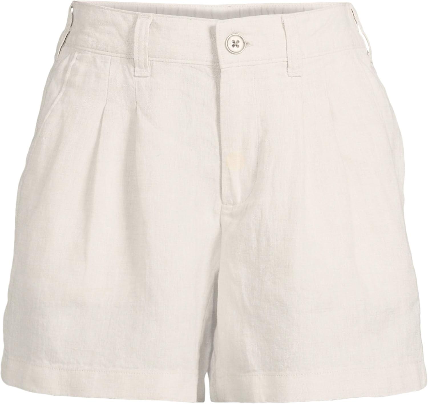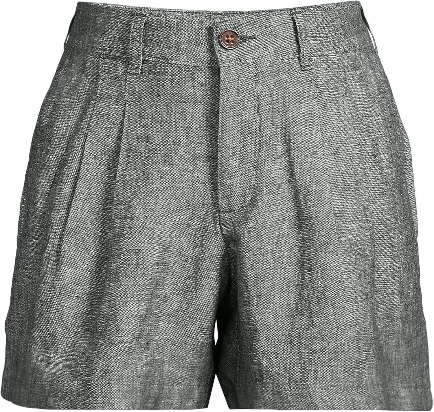 Lands’ End Women’s High Rise Pleated A-line 5″ Linen Shorts(Flax Linen)