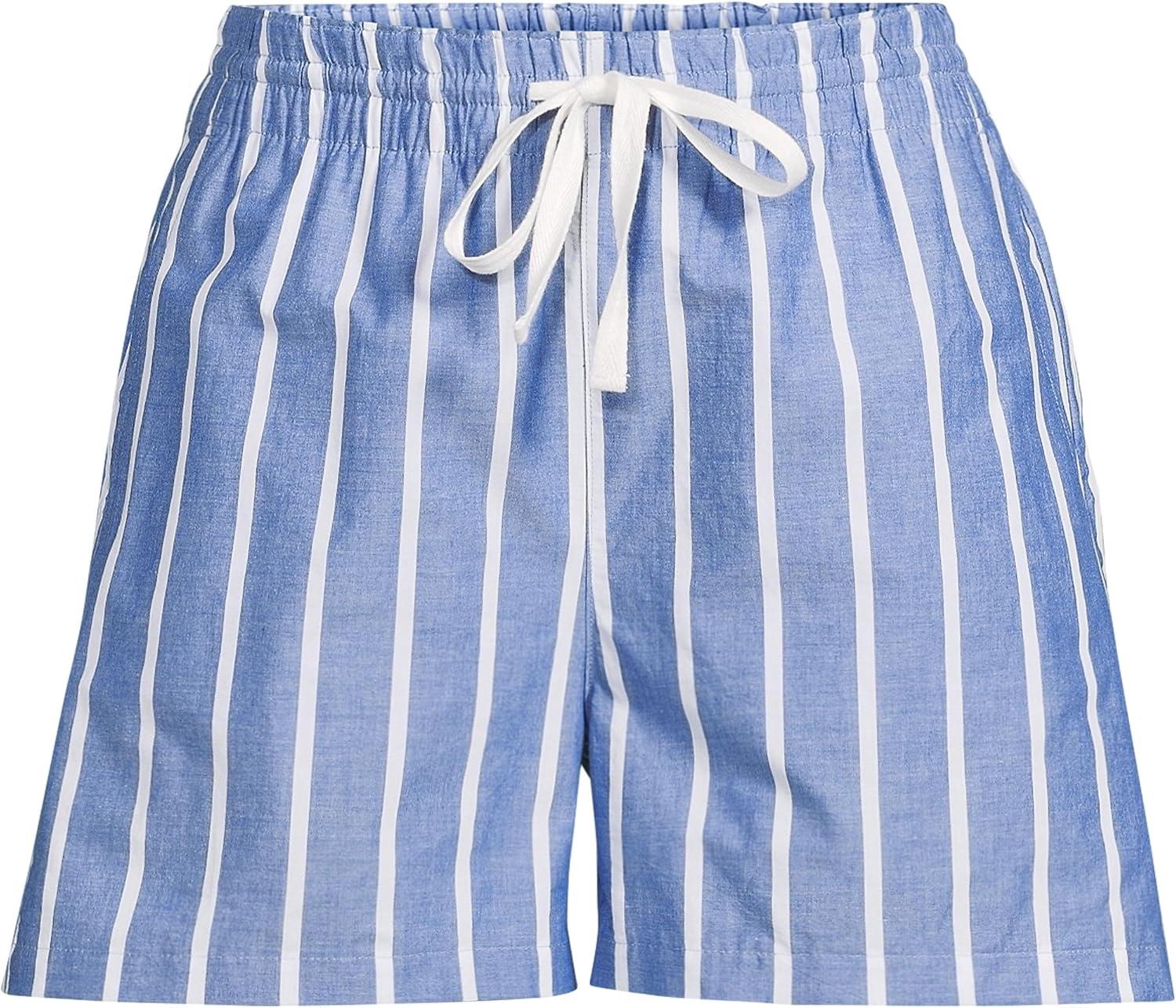 Lands’ End Women’s Poplin High Rise Pull On 5″ Shorts(Sapphire Gem Blue Broad Stripe)