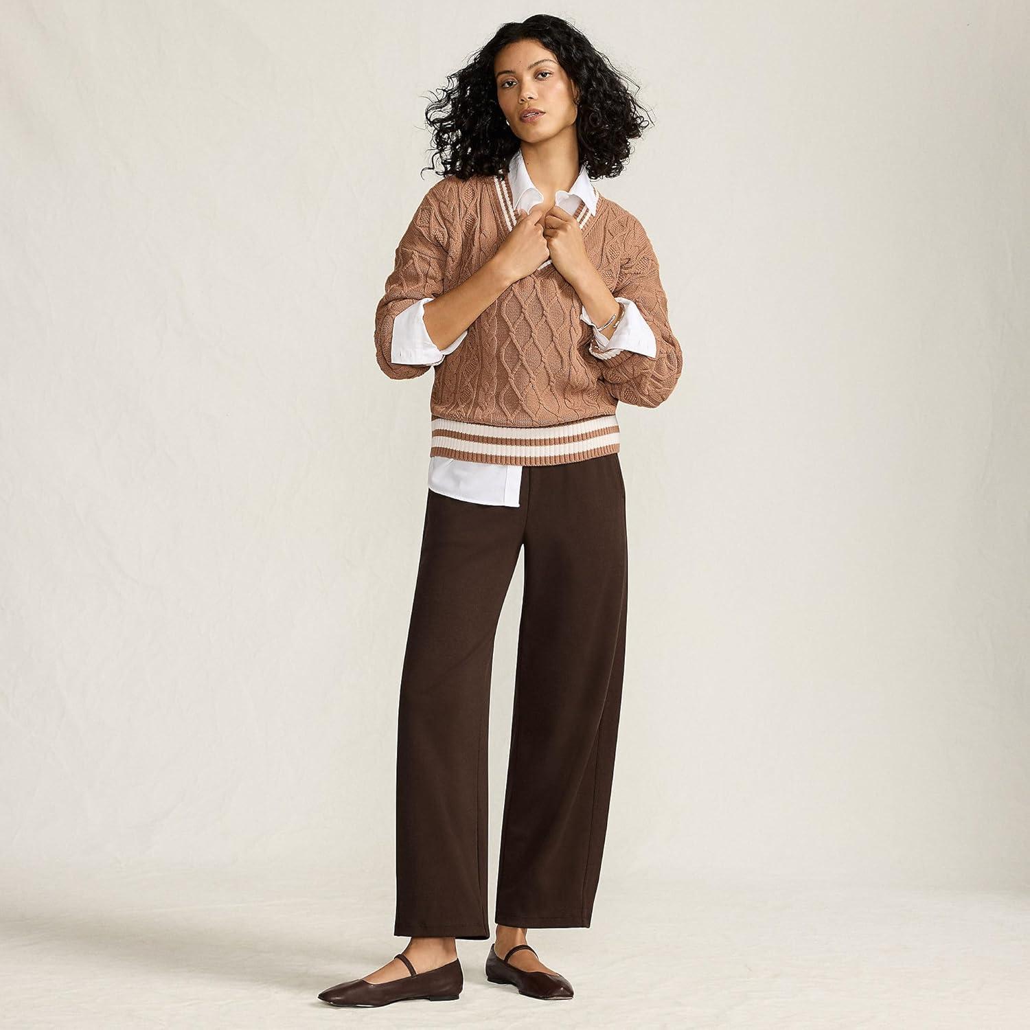 Lands’ End Women’s Sport Knit High Rise Barrel Ankle Pants(Rich Coffee)