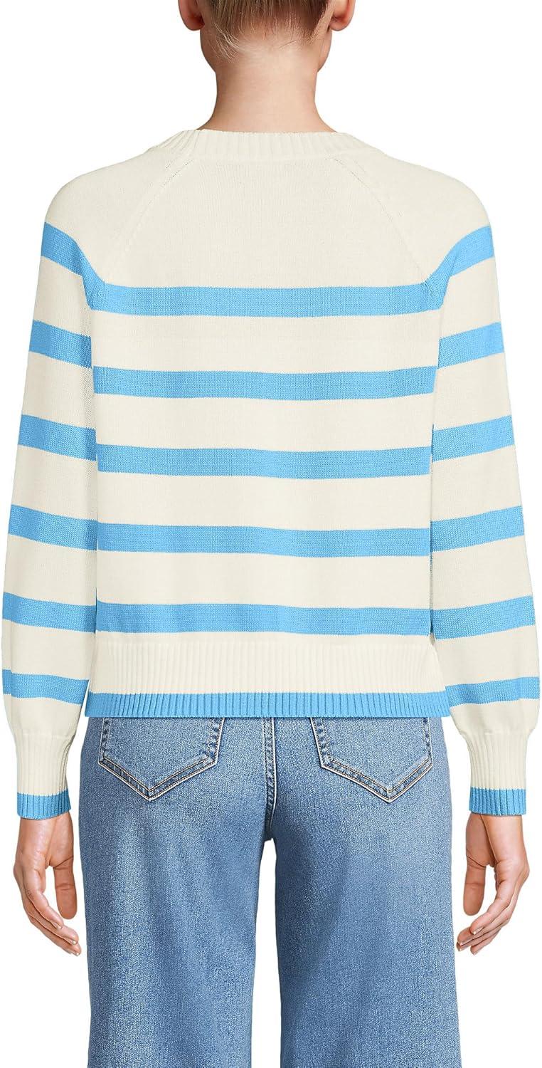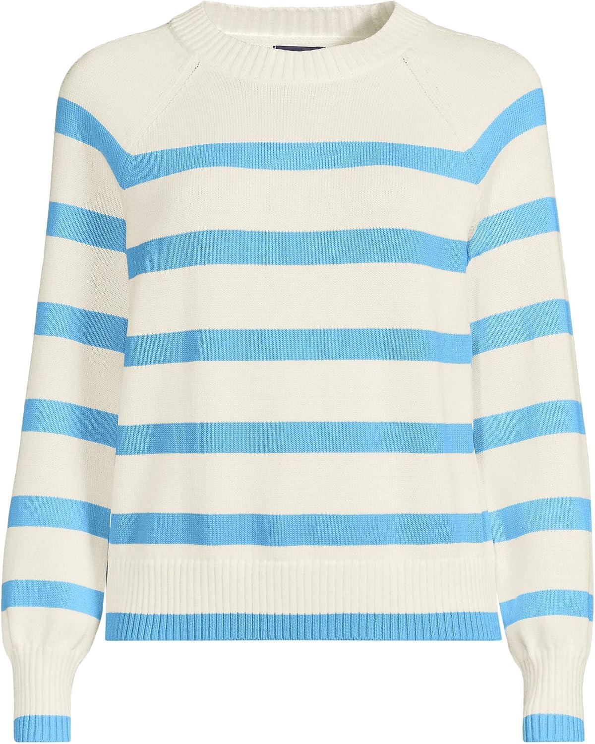 Lands’ End Women’s Drifter Raglan Sleeve Easy Fit Sweater(Fresh Ivory/Blue Stripe)