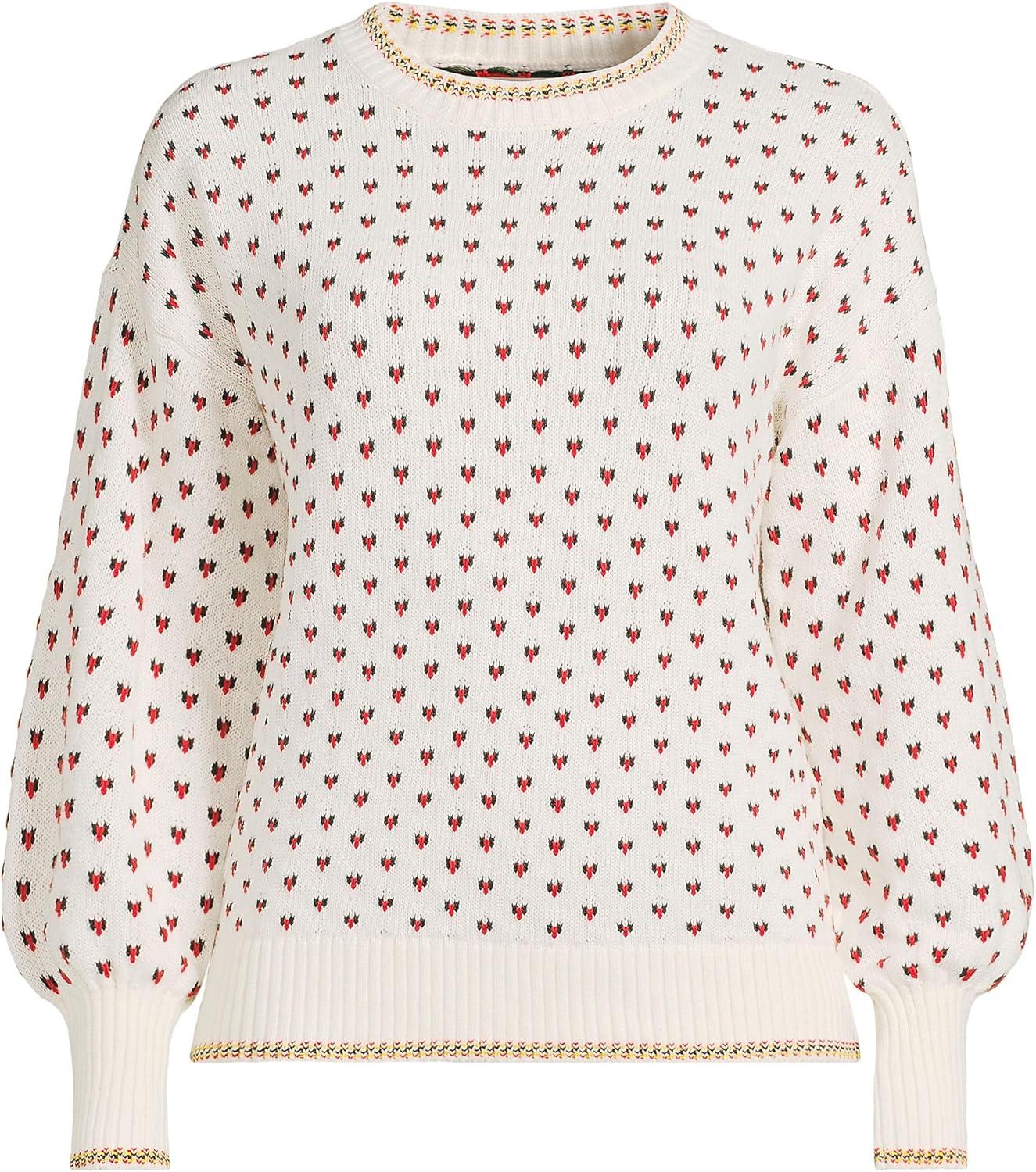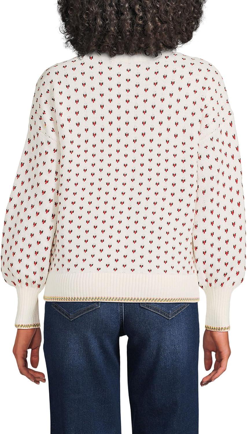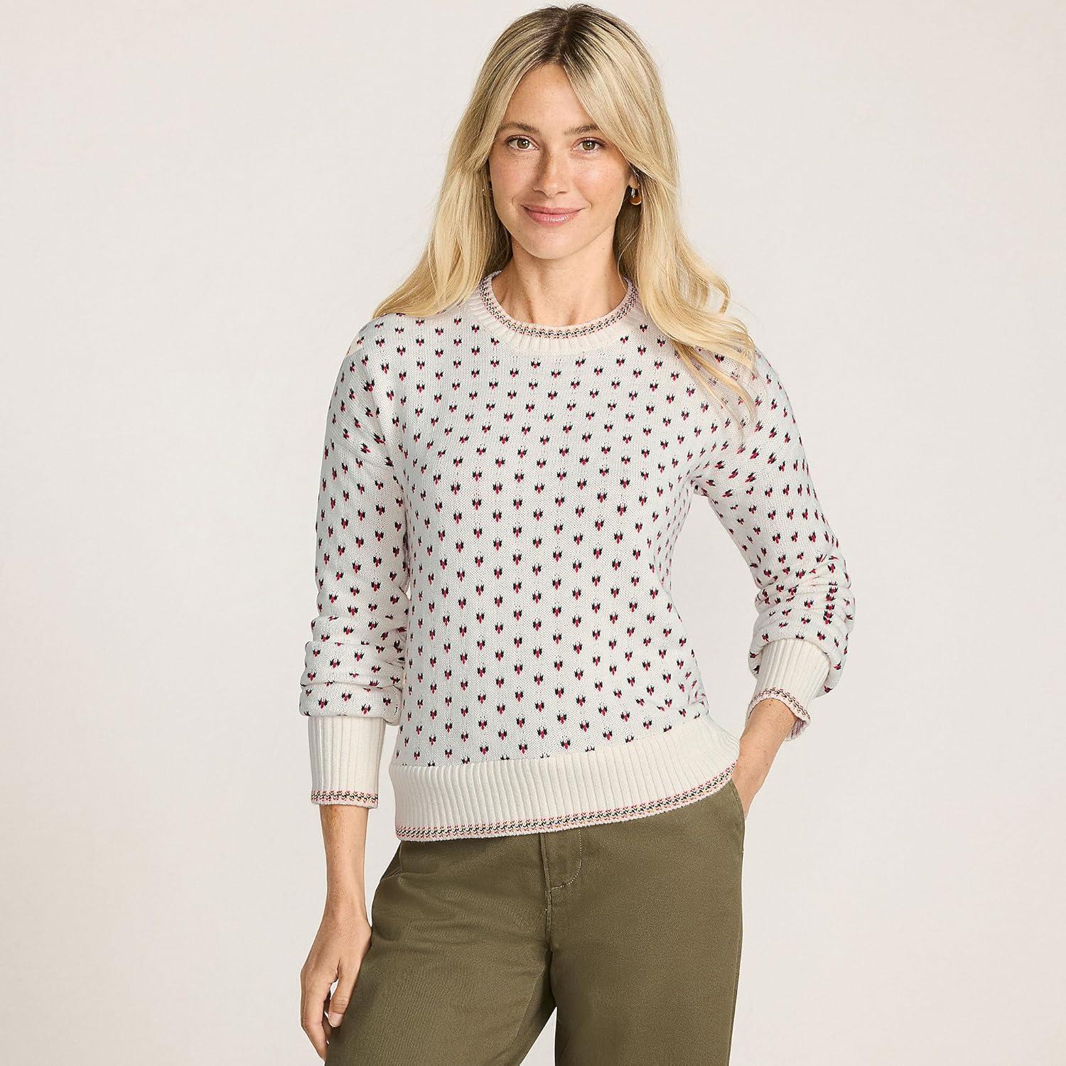 Lands’ End Women’s Drifter Jacquard Crew Neck Sweater(Paris Heart)