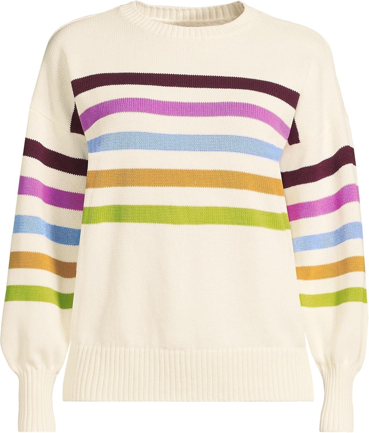 Lands’ End Women’s Drifter Jersey Crewneck Sweater(Ivory Placed Multi Stripe)
