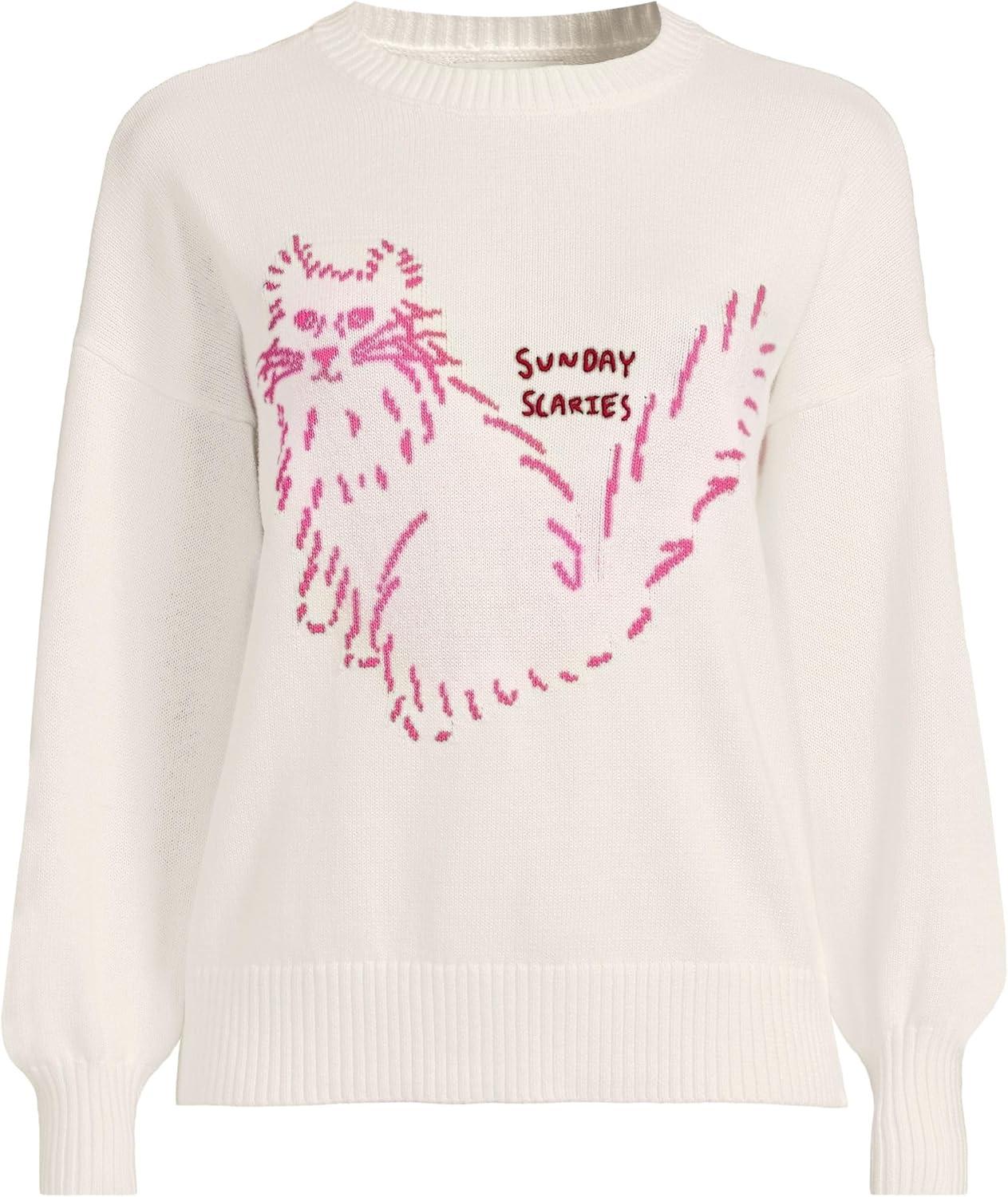 Lands’ End Women’s Drifter Jersey Crewneck Sweater(Sunday Scaries/Ivory)