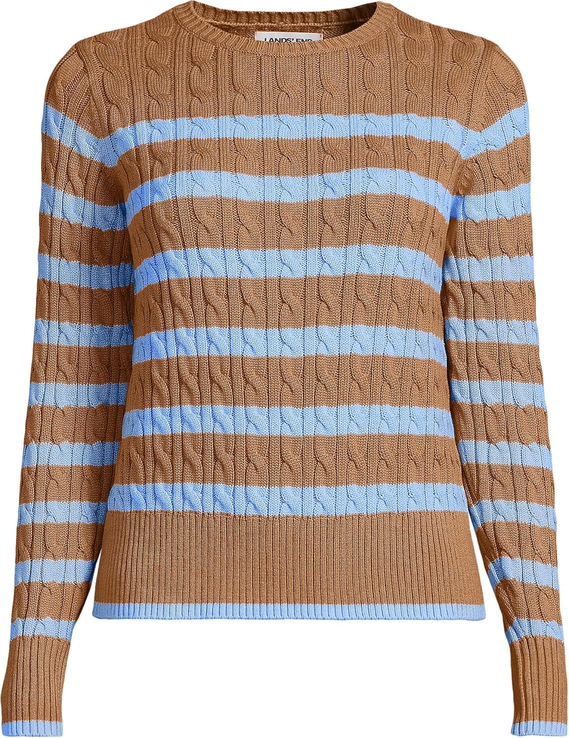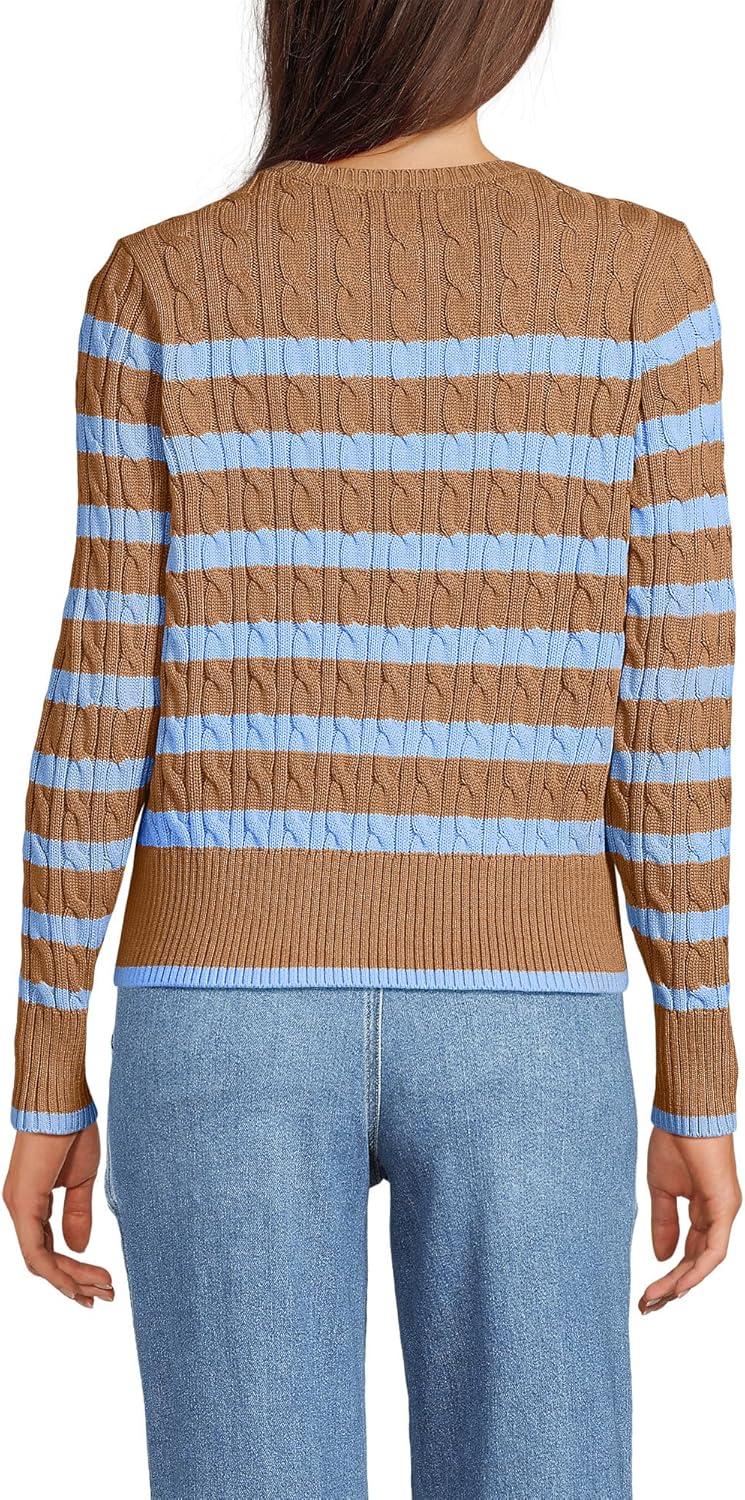 Lands’ End Women’s Drifter Modern Cable Crew Sweater(Canyon Camel/Blue Stripe)