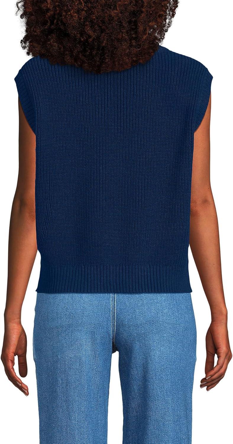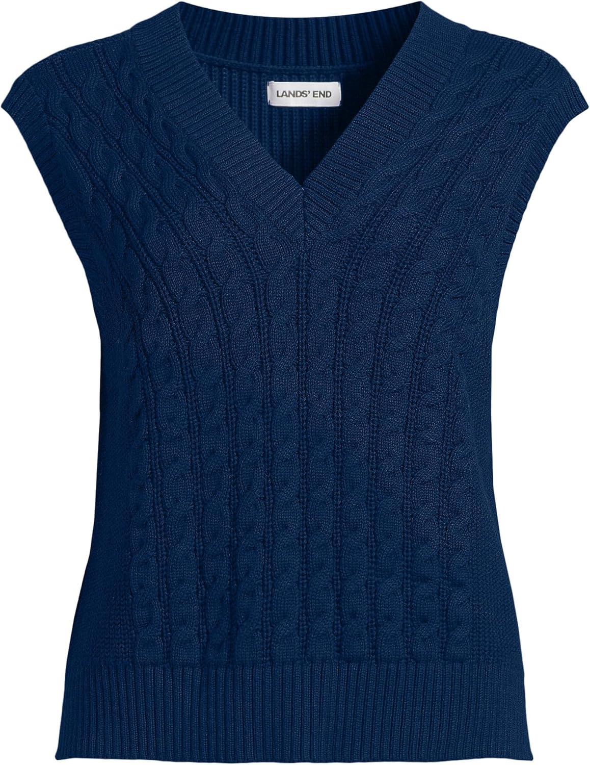 Lands’ End Women’s Drifter Modern Cable V Neck Vest Sweater(Deep Sea Navy)